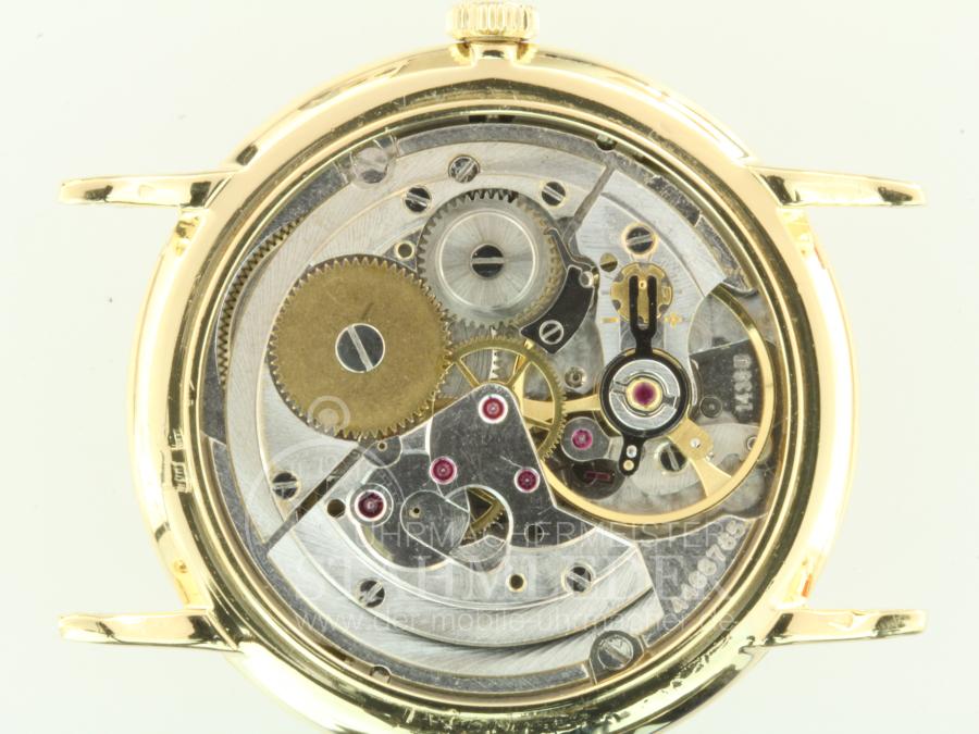 Zum Verkauf steht eine klassische Eterna-Matic Herrenuhr aus dem Jahre 1960. Das dreiteilige runde Gehäuse besteht aus 750 Gelbgold. Im Inneren verrichtet das solide Automatic Cal.1428U seinen Dienst. Dieses wurde ab 1959 gebaut. Die Eterna-Matic ist in einem sehr guten Zustand. Die Uhr wurde von mir grundüberholt und erhält damit eine 12 monatige Funktionsgarantie. Das Gehäuse wurde gereinigt und überarbeitet. Auch nach dem Kauf bin ich für Sie da wenn es Unklarheiten geben sollte oder nach einigen Jahren zum Service Ihrer Uhren. Der Käufer erhält eine 12-monatige Funktionsgarantie. Die gesetzlichen Gewährleistungsrechte bleiben unberührt. Mit der Garantie wird gewährleistet, dass die Uhr keine Funktionsmängel aufweist. Die Dauer beschränkt sich auf ein Jahr. Der Garantieanspruch ist schriftlich unter Vorlage des Kaufbeleges geltend zu machen. Der Garantieanspruch ist ausgeschlossen, wenn die Uhr durch eigenes Verschulden beschädigt bzw. zerstört wurde. Die Garantie umfasst nicht das Glas, sowie das Armband. Garantiegeber ist der Verkäufer, für die Inanspruchnahme hat sich der Käufer an folgende Adresse zu wenden. Die Eterna-Matic besitzt eine Kalenderschnellschaltung: Auf einigen Bildern ist der Sekundenzeiger nicht zu sehen, das hängt mit den langen Belichtungszeiten, bis zu 25 Sekunden, zusammen, der Sek. Zeiger bewegt sich ja weiter aber er ist vorhanden. Sie möchten auch eine Bilderserie von Ihrer Uhr – kein Problem. Bei der nächsten Wartung Ihrer Uhr kann ich das machen. Dazu senden Sie Ihre Uhr an T.Stahmleder, Friedrich-Ebert-Damm 85D, 22047 Hamburg, meine Berufsbezeichnung auf der Sendung bitte weglassen aus Sicherheitsgründen. Dann erstelle ich Ihnen einen Kostenvoranschlag kostenfrei, Portokosten tragen Sie. Die Echtheit der Uhr wird durch die beigefügten Bilder dokumentiert. Alle hier eingestellten Fotos stammen von dieser angebotenen Uhr. Zum Teil sind die Bilder beim Zerlegen der Uhr gemacht worden vor der Reinigung. Oxydationen und Verunreinigungen sind nach dem Reinigen nicht mehr vorhanden. Alle innerhalb des Angebotes genannten und ggf. durch Dritte geschützten Marken-und Warenzeichen unterliegen uneingeschränkten Bestimmungen des jeweils gültigen Kennzeichenrechts und den Besitzrechten der jeweiligen eingetragenen Eigentümer. Allein aufgrund der bloßen Nennung ist nicht der Schluss zu ziehen, dass Markenzeichen nicht durch Rechte Dritter geschützt sind. Das Copyright für veröffentlichte, von UMM T.Stahmleder, selbst erstellte Objekte bleibt allein bei UMM T.Stahmleder. Eine Vervielfältigung oder Verwendung der Bilder und Texte in anderen elektronischen oder gedruckten Publikationen ist nur mit schriftlicher Zustimmung gestattet. Grundsätzliches: Bei der Reparatur von älteren Uhren ist zu beachten !!! Gerade bei älteren Uhren ist besondere Sorgfalt und Aufwand bei der Reparatur nötig, aber trotz dieser Sorgfalt kann man gewisse Eigenschaften der Uhr nicht immer in den Neuzustand zurücksetzen. Dazu gehören z.B. bei verschlissenen Gehäuse/die Wasserdichtigkeit. Daher grundsätzlich kein Duschen + kein Baden !!!