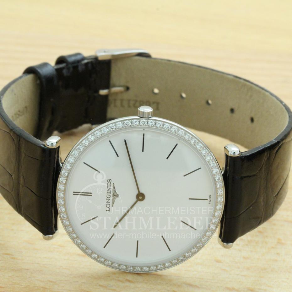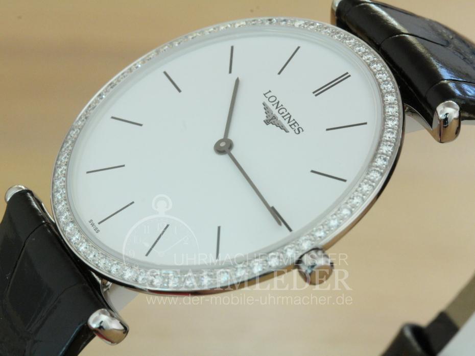 Referenz: Longines Damenuhr 64 Brillanten Krokoband neu Quarz Revision 06/2016 Full Set