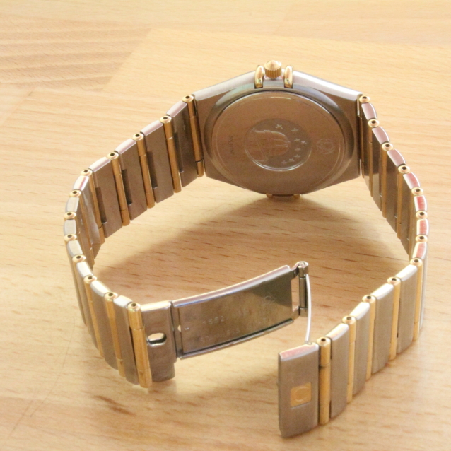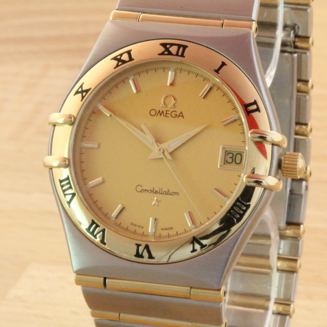 Zum Verkauf steht eine zeitlos, schöne Omega Constellation 95 Herrenquarzuhr aus dem Jahre 2004 im Edelstahlgehäuse mit 18kt Goldkrabben und 18kt Goldlünette. Das Band besteht ebenfalls aus Edelstahl mit massiven 18kt Goldelementen. Im Inneren verrichtet das solide Omega Quarzcal.1532B seinen Dienst. Der Gesamtzustand der Uhr ist sehr gut.