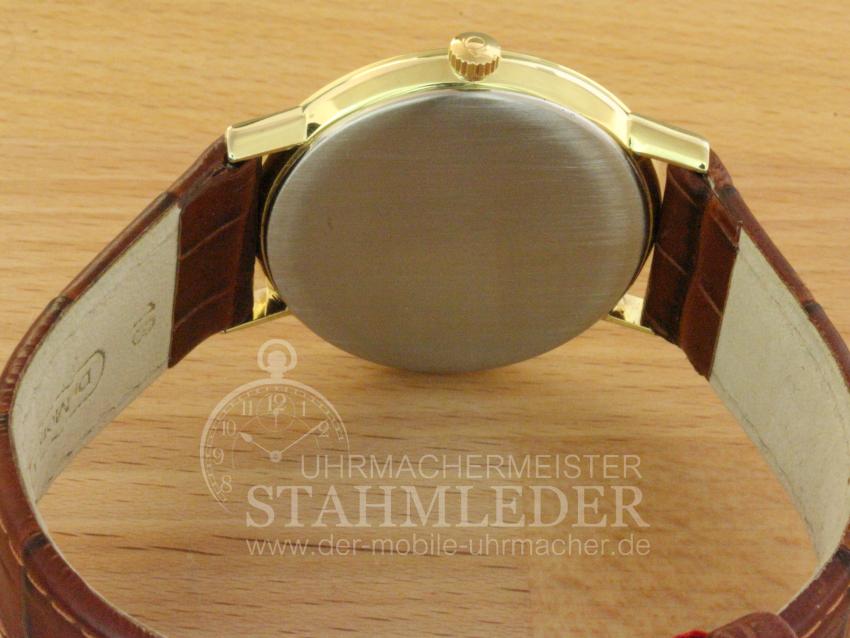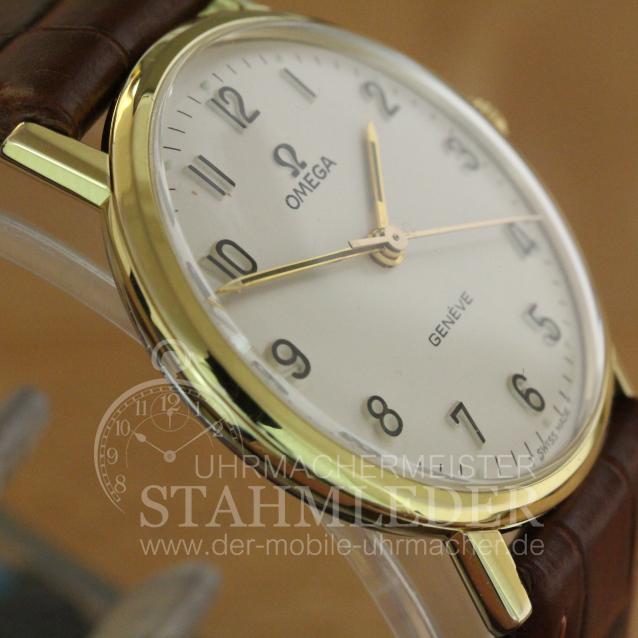 Zum Verkauf steht eine klassische Omega Geneve Herrenuhr mit Handaufzug aus dem Jahre 1967. Das dreiteilige Gehäuse ist vergoldet. Im Inneren verrichtet das solide Omega Cal.601 seinen Dienst. Es wurde von 1962 bis 1970 gebaut. Die Omega hat eine Sekundenanzeige im Centrum, Zentralsekunde. Sie möchten auch eine Bilderserie von Ihrer Uhr – kein Problem. Bei der nächsten Wartung Ihrer Uhr kann ich das machen. Dazu senden Sie Ihre Uhr an T.Stahmleder, Friedrich-Ebert-Damm 85D, 22047 Hamburg, meine Berufsbezeichnung auf der Sendung bitte weglassen aus Sicherheitsgründen. Dann erstelle ich Ihnen einen Kostenvoranschlag kostenfrei, Portokosten tragen Sie. Die Echtheit der Uhr wird durch die beigefügten Bilder dokumentiert. Alle hier eingestellten Fotos stammen von dieser angebotenen Uhr. Zum Teil sind die Bilder beim Zerlegen der Uhr gemacht worden vor der Reinigung. Oxydationen und Verunreinigungen sind nach dem Reinigen nicht mehr vorhanden. Alle innerhalb des Angebotes genannten und ggf. durch Dritte geschützten Marken-und Warenzeichen unterliegen uneingeschränkten Bestimmungen des jeweils gültigen Kennzeichenrechts und den Besitzrechten der jeweiligen eingetragenen Eigentümer. Allein aufgrund der bloßen Nennung ist nicht der Schluss zu ziehen, dass Markenzeichen nicht durch Rechte Dritter geschützt sind. Das Copyright für veröffentlichte, von UMM T.Stahmleder, selbst erstellte Objekte bleibt allein bei UMM T.Stahmleder. Eine Vervielfältigung oder Verwendung der Bilder und Texte in anderen elektronischen oder gedruckten Publikationen ist nur mit schriftlicher Zustimmung gestattet. Grundsätzliches: Bei der Reparatur von älteren Uhren ist zu beachten !!! Gerade bei älteren Uhren ist besondere Sorgfalt und Aufwand bei der Reparatur nötig, aber trotz dieser Sorgfalt kann man gewisse Eigenschaften der Uhr nicht immer in den Neuzustand zurücksetzen. Dazu gehören z.B. bei verschlissenen Gehäuse/die Wasserdichtigkeit. Daher grundsätzlich kein Duschen + kein Baden !!!