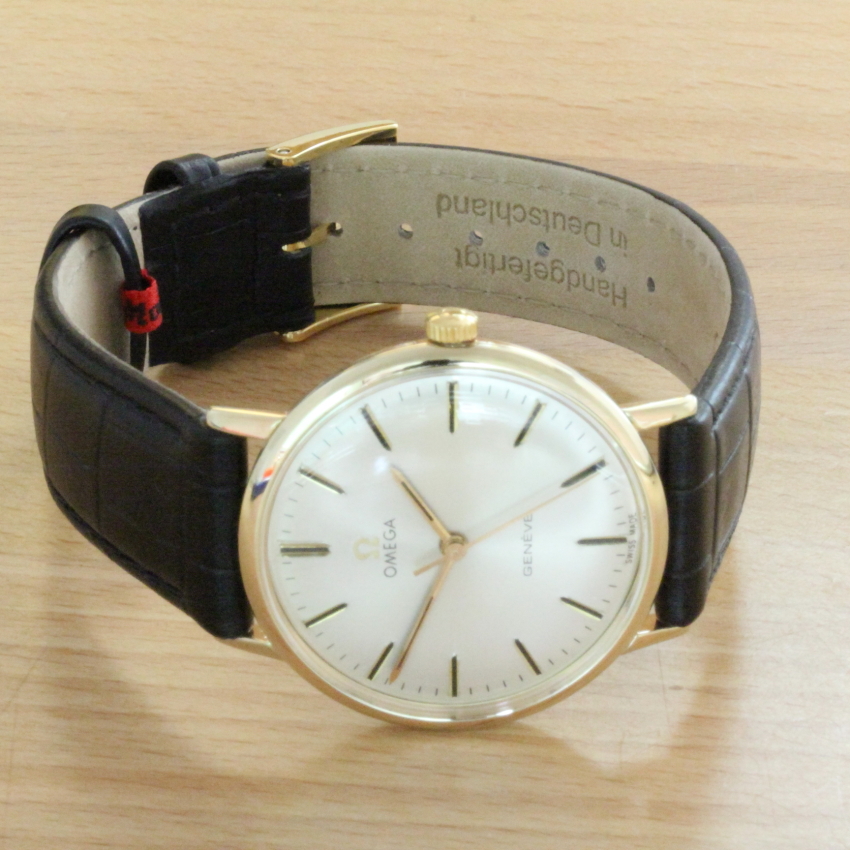Zum Verkauf steht eine klassische Omega Geneve Herrenuhr mit Handaufzug aus dem Jahre 1969. Im Inneren verrichtet das solide Omega Cal.601 seinen Dienst. Es wurde von 1962 bis 1970 gebaut. Die Omega hat eine Sekundenanzeige im Centrum, Zentralsekunde. Sie möchten auch eine Bilderserie von Ihrer Uhr – kein Problem. Bei der nächsten Wartung Ihrer Uhr kann ich das machen. Dazu senden Sie Ihre Uhr an T.Stahmleder, Friedrich-Ebert-Damm 85D, 22047 Hamburg, meine Berufsbezeichnung auf der Sendung bitte weglassen aus Sicherheitsgründen. Dann erstelle ich Ihnen einen Kostenvoranschlag kostenfrei, Portokosten tragen Sie. Die Echtheit der Uhr wird durch die beigefügten Bilder dokumentiert. Alle hier eingestellten Fotos stammen von dieser angebotenen Uhr. Zum Teil sind die Bilder beim Zerlegen der Uhr gemacht worden vor der Reinigung. Oxydationen und Verunreinigungen sind nach dem Reinigen nicht mehr vorhanden. Alle innerhalb des Angebotes genannten und ggf. durch Dritte geschützten Marken-und Warenzeichen unterliegen uneingeschränkten Bestimmungen des jeweils gültigen Kennzeichenrechts und den Besitzrechten der jeweiligen eingetragenen Eigentümer. Allein aufgrund der bloßen Nennung ist nicht der Schluss zu ziehen, dass Markenzeichen nicht durch Rechte Dritter geschützt sind. Das Copyright für veröffentlichte, von UMM T.Stahmleder, selbst erstellte Objekte bleibt allein bei UMM T.Stahmleder. Eine Vervielfältigung oder Verwendung der Bilder und Texte in anderen elektronischen oder gedruckten Publikationen ist nur mit schriftlicher Zustimmung gestattet. Grundsätzliches: Bei der Reparatur von älteren Uhren ist zu beachten !!! Gerade bei älteren Uhren ist besondere Sorgfalt und Aufwand bei der Reparatur nötig, aber trotz dieser Sorgfalt kann man gewisse Eigenschaften der Uhr nicht immer in den Neuzustand zurücksetzen. Dazu gehören z.B. bei verschlissenen Gehäuse/die Wasserdichtigkeit. Daher grundsätzlich kein Duschen + kein Baden !!!