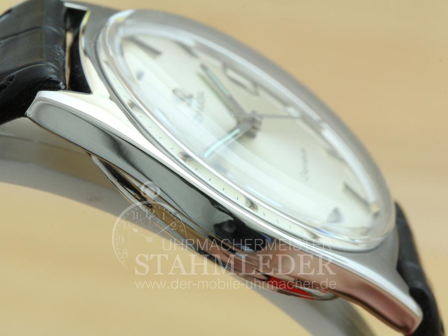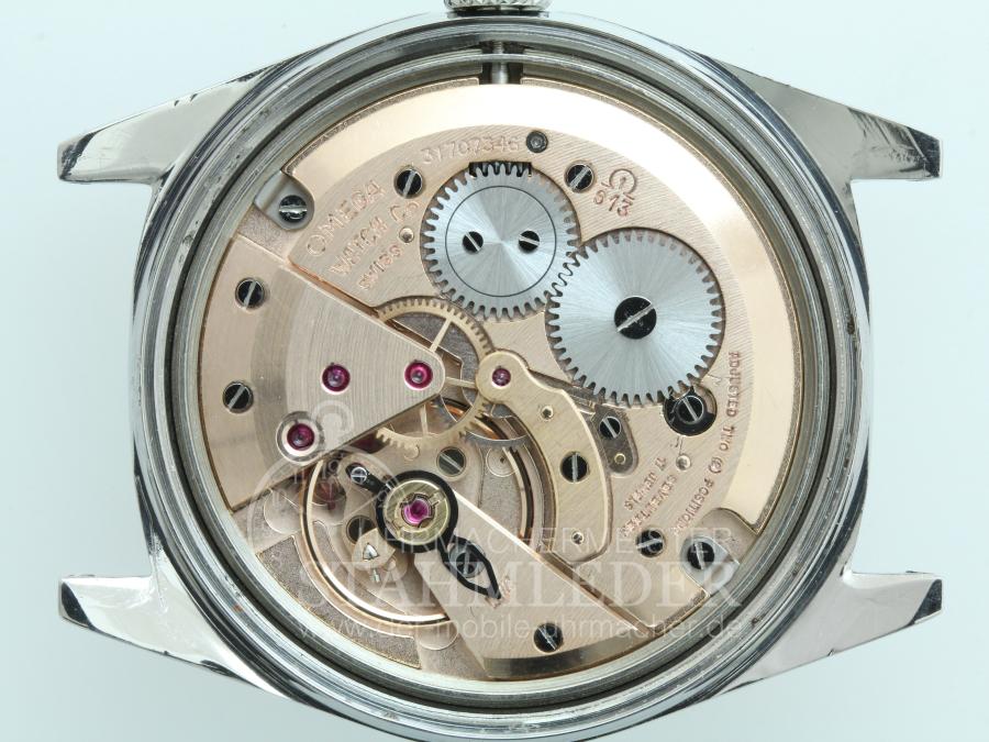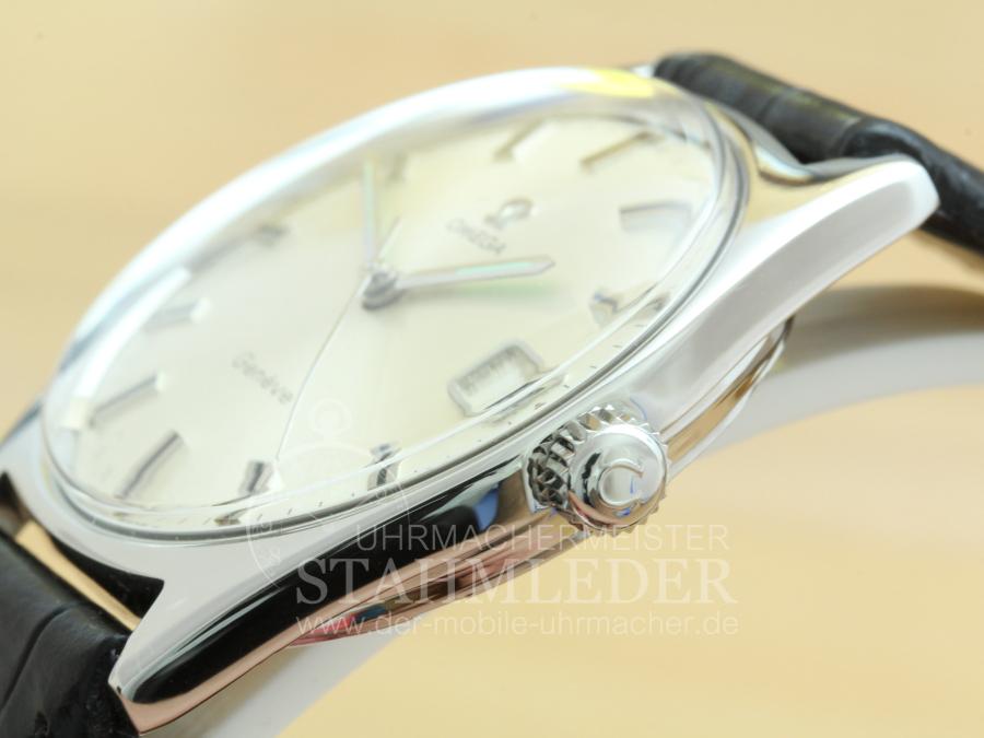 Zum Verkauf steht eine klassische Omega Geneve Herrenuhr mit Handaufzug aus dem Jahre 1969. Das zweiteilige Gehäuse besteht aus Edelstahl. Im Inneren verrichtet das solide Omega Cal.613 seinen Dienst. Es wurde von 1967 bis 1973 gebaut. Im Centrum der Omega befindet sich eine Sekundenanzeige. Die Kalenderanzeige bei "3 Uhr" ist mit einer Schneeschaltung ausgestattet. Die Schnellschaltung wird durch Ziehen der Krone betätigt, aber auch hier, wie bei allen Kalenderschnellschaltungen, bitte auf darauf achten das die Schnellschaltung nicht zwischen 21Uhr - 3 Uhr benutzt wird. Der Käufer erhält eine 12-monatige Funktionsgarantie. Die gesetzlichen Gewährleistungsrechte bleiben unberührt. Mit der Garantie wird gewährleistet, dass die Uhr keine Funktionsmängel aufweist. Die Dauer beschränkt sich auf ein Jahr. Der Garantieanspruch ist schriftlich unter Vorlage des Kaufbeleges geltend zu machen. Der Garantieanspruch ist ausgeschlossen, wenn die Uhr durch eigenes Verschulden beschädigt bzw. zerstört wurde. Die Garantie umfasst nicht das Glas, sowie das Armband. Garantiegeber ist der Verkäufer, für die Inanspruchnahme hat sich der Käufer an folgende Adresse zu wenden. Sie möchten auch eine Bilderserie von Ihrer Uhr – kein Problem. Bei der nächsten Wartung Ihrer Uhr kann ich das machen. Dazu senden Sie Ihre Uhr an T.Stahmleder, Friedrich-Ebert-Damm 85D, 22047 Hamburg, meine Berufsbezeichnung auf der Sendung bitte weglassen aus Sicherheitsgründen. Dann erstelle ich Ihnen einen Kostenvoranschlag kostenfrei, Portokosten tragen Sie. Die Echtheit der Uhr wird durch die beigefügten Bilder dokumentiert. Alle hier eingestellten Fotos stammen von dieser angebotenen Uhr. Zum Teil sind die Bilder beim Zerlegen der Uhr gemacht worden vor der Reinigung. Oxydationen und Verunreinigungen sind nach dem Reinigen nicht mehr vorhanden. Alle innerhalb des Angebotes genannten und ggf. durch Dritte geschützten Marken-und Warenzeichen unterliegen uneingeschränkten Bestimmungen des jeweils gültigen Kennzeichenrechts und den Besitzrechten der jeweiligen eingetragenen Eigentümer. Allein aufgrund der bloßen Nennung ist nicht der Schluss zu ziehen, dass Markenzeichen nicht durch Rechte Dritter geschützt sind. Das Copyright für veröffentlichte, von UMM T.Stahmleder, selbst erstellte Objekte bleibt allein bei UMM T.Stahmleder. Eine Vervielfältigung oder Verwendung der Bilder und Texte in anderen elektronischen oder gedruckten Publikationen ist nur mit schriftlicher Zustimmung gestattet. Grundsätzliches: Bei der Reparatur von älteren Uhren ist zu beachten !!! Gerade bei älteren Uhren ist besondere Sorgfalt und Aufwand bei der Reparatur nötig, aber trotz dieser Sorgfalt kann man gewisse Eigenschaften der Uhr nicht immer in den Neuzustand zurücksetzen. Dazu gehören z.B. bei verschlissenen Gehäuse/die Wasserdichtigkeit. Daher grundsätzlich kein Duschen + kein Baden !!!