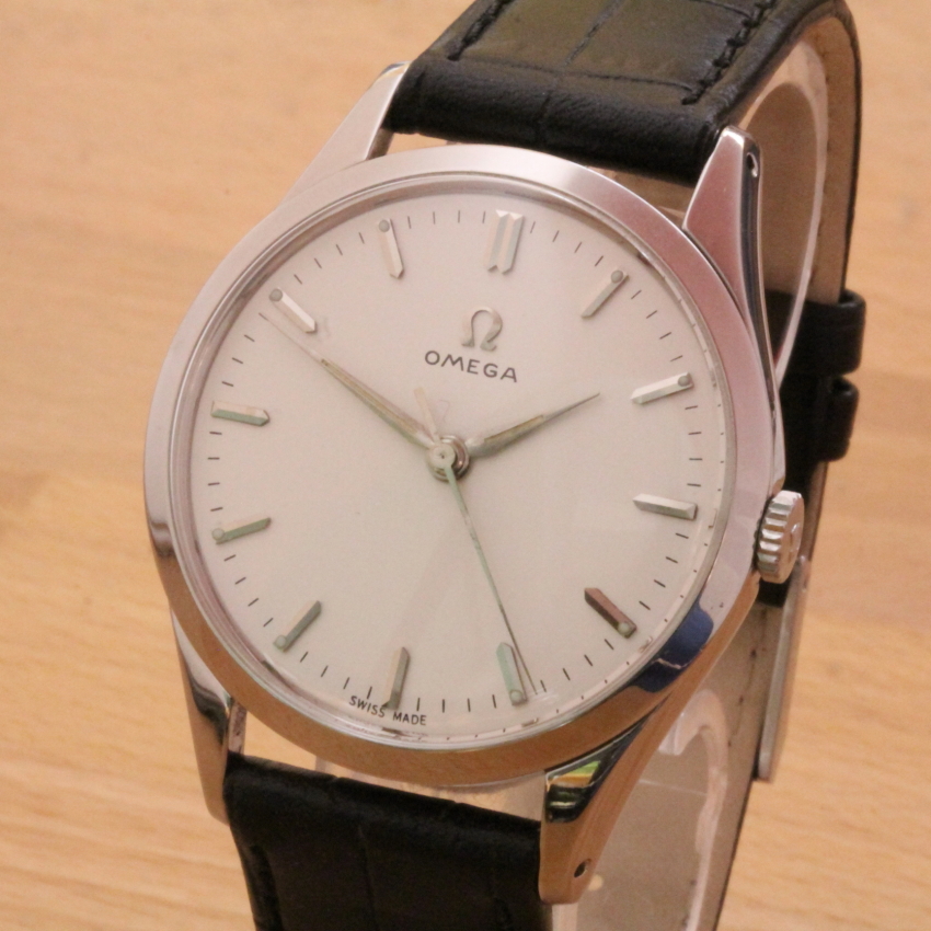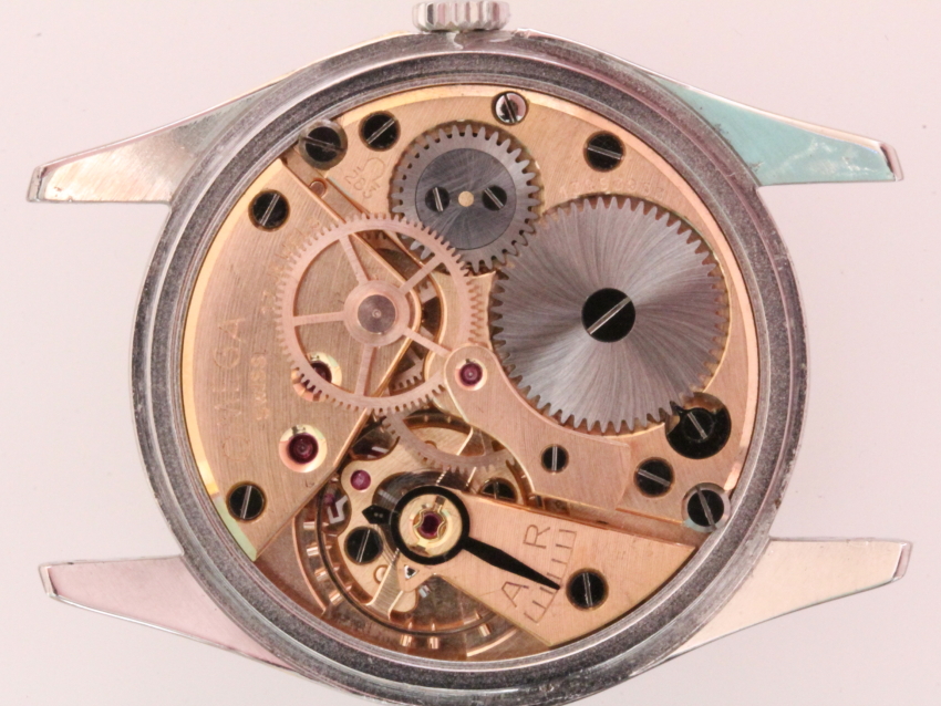 Zum Verkauf steht eine klassische Omega Herrenuhr mit Handaufzug aus dem Jahre 1952. Das Gehäuse besteht aus Edelstahl. Im Inneren verrichtet das solide Omega Cal.283 seinen Dienst. Es wurde von 1940-1963 gebaut. Die Omega hat eine Sekundenanzeige im Zentrum. Sie möchten auch eine Bilderserie von Ihrer Uhr – kein Problem. Bei der nächsten Wartung Ihrer Uhr kann ich das machen. Dazu senden Sie Ihre Uhr an T.Stahmleder, Friedrich-Ebert-Damm 85D, 22047 Hamburg, meine Berufsbezeichnung auf der Sendung bitte weglassen aus Sicherheitsgründen. Dann erstelle ich Ihnen einen Kostenvoranschlag kostenfrei, Portokosten tragen Sie. Die Echtheit der Uhr wird durch die beigefügten Bilder dokumentiert. Alle hier eingestellten Fotos stammen von dieser angebotenen Uhr. Zum Teil sind die Bilder beim Zerlegen der Uhr gemacht worden vor der Reinigung. Oxydationen und Verunreinigungen sind nach dem Reinigen nicht mehr vorhanden. Alle innerhalb des Angebotes genannten und ggf. durch Dritte geschützten Marken-und Warenzeichen unterliegen uneingeschränkten Bestimmungen des jeweils gültigen Kennzeichenrechts und den Besitzrechten der jeweiligen eingetragenen Eigentümer. Allein aufgrund der bloßen Nennung ist nicht der Schluss zu ziehen, dass Markenzeichen nicht durch Rechte Dritter geschützt sind. Das Copyright für veröffentlichte, von UMM T.Stahmleder, selbst erstellte Objekte bleibt allein bei UMM T.Stahmleder. Eine Vervielfältigung oder Verwendung der Bilder und Texte in anderen elektronischen oder gedruckten Publikationen ist nur mit schriftlicher Zustimmung gestattet. Grundsätzliches: Bei der Reparatur von älteren Uhren ist zu beachten !!! Gerade bei älteren Uhren ist besondere Sorgfalt und Aufwand bei der Reparatur nötig, aber trotz dieser Sorgfalt kann man gewisse Eigenschaften der Uhr nicht immer in den Neuzustand zurücksetzen. Dazu gehören z.B. bei verschlissenen Gehäuse/die Wasserdichtigkeit. Daher grundsätzlich kein Duschen + kein Baden !!!