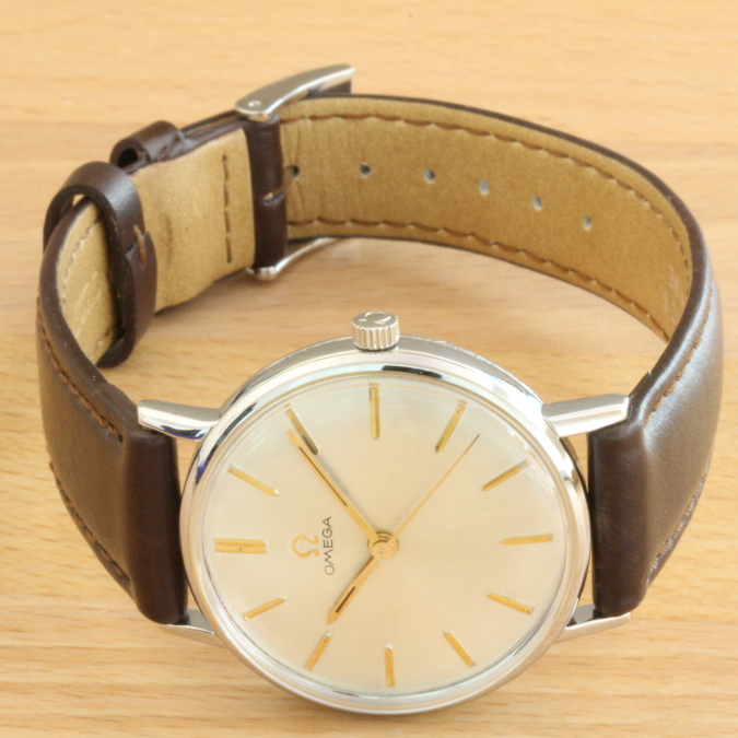 Zum Verkauf steht eine klassische Omega Herrenuhr mit Handaufzug aus dem Jahre 1964. Das dreiteilige Gehäuse besteht aus Edelstahl. Im Inneren verrichtet das solide Omega Cal.600 seinen Dienst. Es wurde von 1960 bis 1964 gebaut. Die Omega hat eine Sekundenanzeige im Centrum, Zentralsekunde. Diese schlichte Omega mit ihrem Durchmesser von knapp 32mm ist für den schlanken Arm gedacht und auch als Damenuhr tragbar. Das Zifferblatt trägt den Scharm Ihres Alters von ca.51 Jahren mit leichter Patina. Der Käufer erhält eine 12-monatige Funktionsgarantie. Die gesetzlichen Gewährleistungsrechte bleiben unberührt. Mit der Garantie wird gewährleistet, dass die Uhr keine Funktionsmängel aufweist. Die Dauer beschränkt sich auf ein Jahr. Der Garantieanspruch ist schriftlich unter Vorlage des Kaufbeleges geltend zu machen. Der Garantieanspruch ist ausgeschlossen, wenn die Uhr durch eigenes Verschulden beschädigt bzw. zerstört wurde. Die Garantie umfasst nicht das Glas, sowie das Armband. Garantiegeber ist der Verkäufer, für die Inanspruchnahme hat sich der Käufer an folgende Adresse zu wenden. Sie möchten auch eine Bilderserie von Ihrer Uhr – kein Problem. Bei der nächsten Wartung Ihrer Uhr kann ich das machen. Dazu senden Sie Ihre Uhr an T.Stahmleder, Friedrich-Ebert-Damm 85D, 22047 Hamburg, meine Berufsbezeichnung auf der Sendung bitte weglassen aus Sicherheitsgründen. Dann erstelle ich Ihnen einen Kostenvoranschlag kostenfrei, Portokosten tragen Sie. Die Echtheit der Uhr wird durch die beigefügten Bilder dokumentiert. Alle hier eingestellten Fotos stammen von dieser angebotenen Uhr. Zum Teil sind die Bilder beim Zerlegen der Uhr gemacht worden vor der Reinigung. Oxydationen und Verunreinigungen sind nach dem Reinigen nicht mehr vorhanden. Alle innerhalb des Angebotes genannten und ggf. durch Dritte geschützten Marken-und Warenzeichen unterliegen uneingeschränkten Bestimmungen des jeweils gültigen Kennzeichenrechts und den Besitzrechten der jeweiligen eingetragenen Eigentümer. Allein aufgrund der bloßen Nennung ist nicht der Schluss zu ziehen, dass Markenzeichen nicht durch Rechte Dritter geschützt sind. Das Copyright für veröffentlichte, von UMM T.Stahmleder, selbst erstellte Objekte bleibt allein bei UMM T.Stahmleder. Eine Vervielfältigung oder Verwendung der Bilder und Texte in anderen elektronischen oder gedruckten Publikationen ist nur mit schriftlicher Zustimmung gestattet. Grundsätzliches: Bei der Reparatur von älteren Uhren ist zu beachten !!! Gerade bei älteren Uhren ist besondere Sorgfalt und Aufwand bei der Reparatur nötig, aber trotz dieser Sorgfalt kann man gewisse Eigenschaften der Uhr nicht immer in den Neuzustand zurücksetzen. Dazu gehören z.B. bei verschlissenen Gehäuse/die Wasserdichtigkeit. Daher grundsätzlich kein Duschen + kein Baden !!!