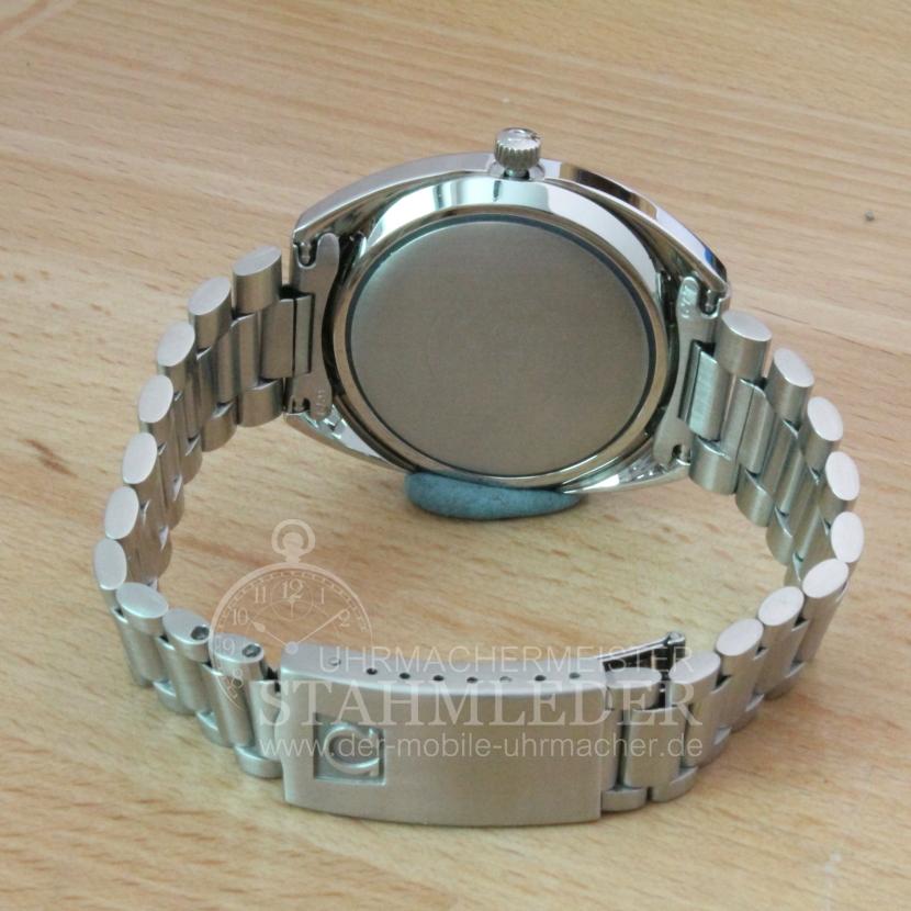 Zum Verkauf steht eine klassische Omega Seamaster Herrenautomatikuhr aus dem Jahre 1972. Das Gehäuse besteht aus Edelstahl. Im Inneren verrichtet das solide Omega Automatikcal.1022 seinen Dienst. Sie möchten auch eine Bilderserie von Ihrer Uhr – kein Problem. Bei der nächsten Wartung Ihrer Uhr kann ich das machen. Dazu senden Sie Ihre Uhr an T.Stahmleder, Friedrich-Ebert-Damm 85D, 22047 Hamburg, meine Berufsbezeichnung auf der Sendung bitte weglassen aus Sicherheitsgründen. Dann erstelle ich Ihnen einen Kostenvoranschlag kostenfrei, Portokosten tragen Sie. Die Echtheit der Uhr wird durch die beigefügten Bilder dokumentiert. Alle hier eingestellten Fotos stammen von dieser angebotenen Uhr. Zum Teil sind die Bilder beim Zerlegen der Uhr gemacht worden vor der Reinigung. Oxydationen und Verunreinigungen sind nach dem Reinigen nicht mehr vorhanden. Alle innerhalb des Angebotes genannten und ggf. durch Dritte geschützten Marken-und Warenzeichen unterliegen uneingeschränkten Bestimmungen des jeweils gültigen Kennzeichenrechts und den Besitzrechten der jeweiligen eingetragenen Eigentümer. Allein aufgrund der bloßen Nennung ist nicht der Schluss zu ziehen, dass Markenzeichen nicht durch Rechte Dritter geschützt sind. Das Copyright für veröffentlichte, von UMM T.Stahmleder, selbst erstellte Objekte bleibt allein bei UMM T.Stahmleder. Eine Vervielfältigung oder Verwendung der Bilder und Texte in anderen elektronischen oder gedruckten Publikationen ist nur mit schriftlicher Zustimmung gestattet. Grundsätzliches: Bei der Reparatur von älteren Uhren ist zu beachten !!! Gerade bei älteren Uhren ist besondere Sorgfalt und Aufwand bei der Reparatur nötig, aber trotz dieser Sorgfalt kann man gewisse Eigenschaften der Uhr nicht immer in den Neuzustand zurücksetzen. Dazu gehören z.B. bei verschlissenen Gehäuse/die Wasserdichtigkeit. Daher grundsätzlich kein Duschen + kein Baden !!!
