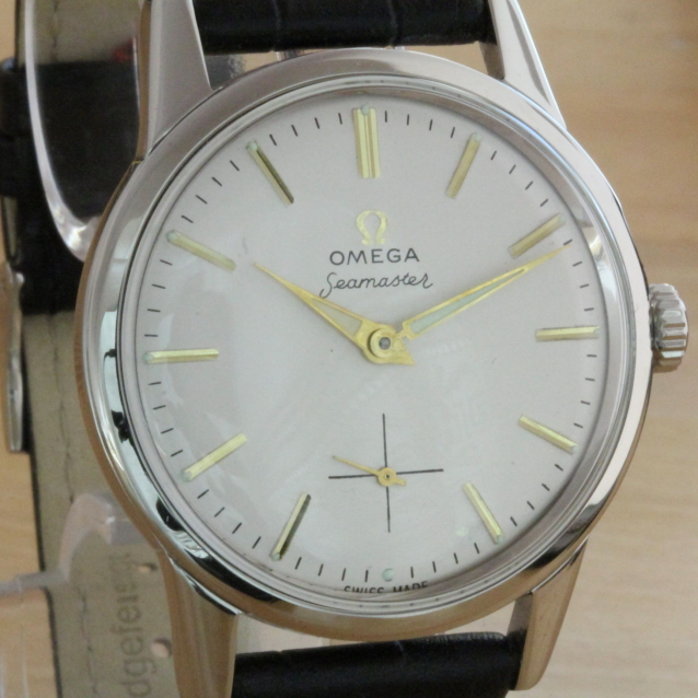 Zum Verkauf steht eine klassische Omega Herrenuhr mit Handaufzug aus dem Jahre 1961. Das Gehäuse besteht aus Edelstahl. Im Inneren verrichtet das solide Omega Cal.268 seinen Dienst. Die Omega hat eine Sekundenanzeige dezentral, bei "6 Uhr". Sie möchten auch eine Bilderserie von Ihrer Uhr – kein Problem. Bei der nächsten Wartung Ihrer Uhr kann ich das machen. Dazu senden Sie Ihre Uhr an T.Stahmleder, Friedrich-Ebert-Damm 85D, 22047 Hamburg, meine Berufsbezeichnung auf der Sendung bitte weglassen aus Sicherheitsgründen. Dann erstelle ich Ihnen einen Kostenvoranschlag kostenfrei, Portokosten tragen Sie. Die Echtheit der Uhr wird durch die beigefügten Bilder dokumentiert. Alle hier eingestellten Fotos stammen von dieser angebotenen Uhr. Zum Teil sind die Bilder beim Zerlegen der Uhr gemacht worden vor der Reinigung. Oxydationen und Verunreinigungen sind nach dem Reinigen nicht mehr vorhanden. Alle innerhalb des Angebotes genannten und ggf. durch Dritte geschützten Marken-und Warenzeichen unterliegen uneingeschränkten Bestimmungen des jeweils gültigen Kennzeichenrechts und den Besitzrechten der jeweiligen eingetragenen Eigentümer. Allein aufgrund der bloßen Nennung ist nicht der Schluss zu ziehen, dass Markenzeichen nicht durch Rechte Dritter geschützt sind. Das Copyright für veröffentlichte, von UMM T.Stahmleder, selbst erstellte Objekte bleibt allein bei UMM T.Stahmleder. Eine Vervielfältigung oder Verwendung der Bilder und Texte in anderen elektronischen oder gedruckten Publikationen ist nur mit schriftlicher Zustimmung gestattet. Grundsätzliches: Bei der Reparatur von älteren Uhren ist zu beachten !!! Gerade bei älteren Uhren ist besondere Sorgfalt und Aufwand bei der Reparatur nötig, aber trotz dieser Sorgfalt kann man gewisse Eigenschaften der Uhr nicht immer in den Neuzustand zurücksetzen. Dazu gehören z.B. bei verschlissenen Gehäuse/die Wasserdichtigkeit. Daher grundsätzlich kein Duschen + kein Baden !!!