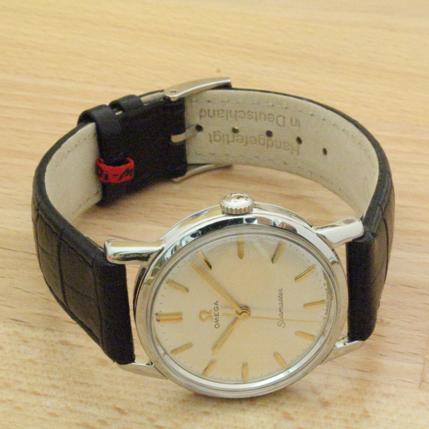 Zum Verkauf steht eine klassische Omega Seamaster Herrenuhr mit Handaufzug aus dem Jahre 1964. Das Gehäuse besteht aus Edelstahl. Im Inneren verrichtet das solide Omega Cal.600 seinen Dienst. Die Omega hat eine Sekundenanzeige im Centrum, Zentralsekunde. Sie möchten auch eine Bilderserie von Ihrer Uhr – kein Problem. Bei der nächsten Wartung Ihrer Uhr kann ich das machen. Dazu senden Sie Ihre Uhr an T.Stahmleder, Friedrich-Ebert-Damm 85D, 22047 Hamburg, meine Berufsbezeichnung auf der Sendung bitte weglassen aus Sicherheitsgründen. Dann erstelle ich Ihnen einen Kostenvoranschlag kostenfrei, Portokosten tragen Sie. Die Echtheit der Uhr wird durch die beigefügten Bilder dokumentiert. Alle hier eingestellten Fotos stammen von dieser angebotenen Uhr. Zum Teil sind die Bilder beim Zerlegen der Uhr gemacht worden vor der Reinigung. Oxydationen und Verunreinigungen sind nach dem Reinigen nicht mehr vorhanden. Alle innerhalb des Angebotes genannten und ggf. durch Dritte geschützten Marken-und Warenzeichen unterliegen uneingeschränkten Bestimmungen des jeweils gültigen Kennzeichenrechts und den Besitzrechten der jeweiligen eingetragenen Eigentümer. Allein aufgrund der bloßen Nennung ist nicht der Schluss zu ziehen, dass Markenzeichen nicht durch Rechte Dritter geschützt sind. Das Copyright für veröffentlichte, von UMM T.Stahmleder, selbst erstellte Objekte bleibt allein bei UMM T.Stahmleder. Eine Vervielfältigung oder Verwendung der Bilder und Texte in anderen elektronischen oder gedruckten Publikationen ist nur mit schriftlicher Zustimmung gestattet. Grundsätzliches: Bei der Reparatur von älteren Uhren ist zu beachten !!! Gerade bei älteren Uhren ist besondere Sorgfalt und Aufwand bei der Reparatur nötig, aber trotz dieser Sorgfalt kann man gewisse Eigenschaften der Uhr nicht immer in den Neuzustand zurücksetzen. Dazu gehören z.B. bei verschlissenen Gehäuse/die Wasserdichtigkeit. Daher grundsätzlich kein Duschen + kein Baden !!!