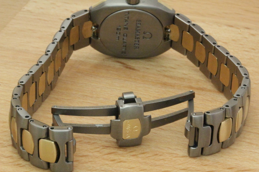 Zum Verkauf steht eine zeitlos, schöne Omega Seamaster Polaris Damenuhr aus dem Jahre 1984 im Titangehäuse mit 18kt Goldeinlagen und Brilliantzifferblatt. Das Band besteht ebenfalls aus Titan mit massiven 18kt Goldelementen. Im Inneren verrichtet das solide Omega Quarzcal.1450 seinen Dienst. Der Gesamtzustand der Uhr ist sehr gut.