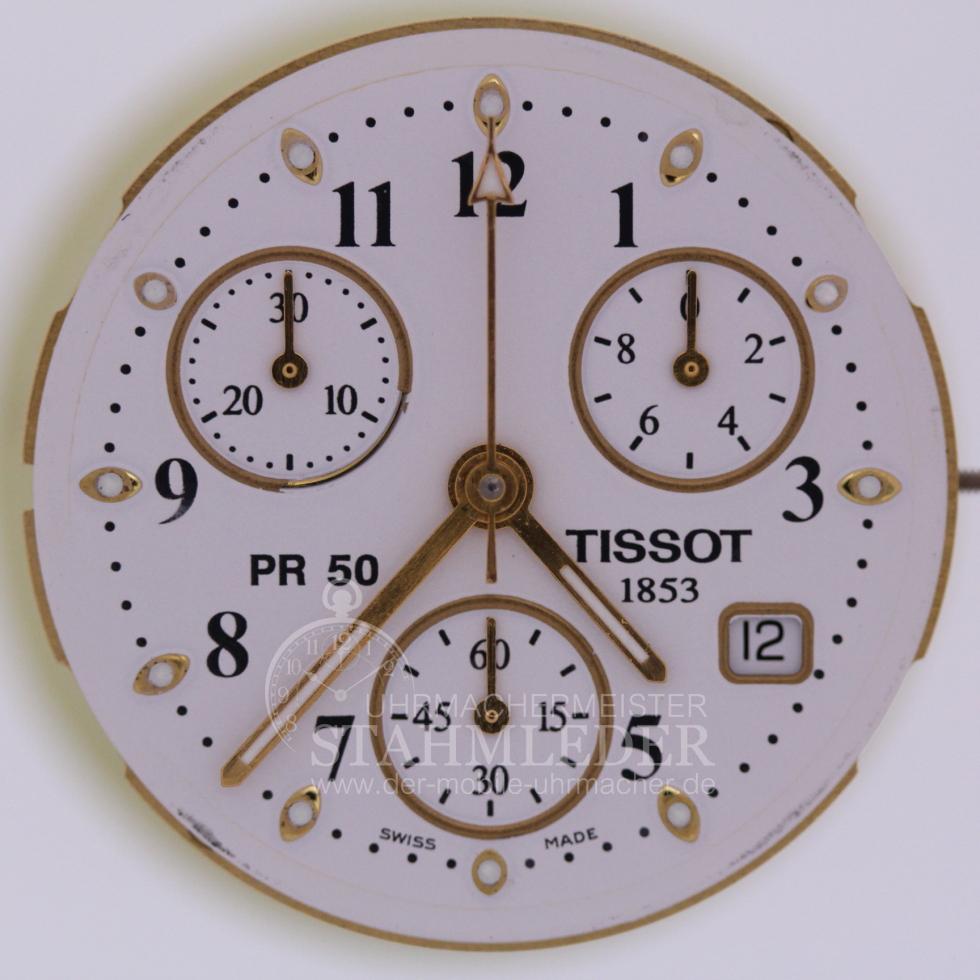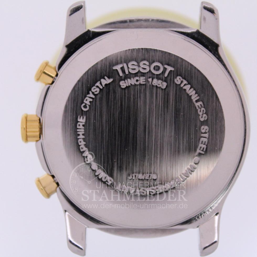 Zum Verkauf steht eine Tissot PR50 Herrenchronograph in Stahl/vergoldet mit Metallband Stahl/vergoldet. Diese Uhr hat zur normalen Zeitanzeige noch eine Stoppuhr eingebaut. Mit Betätigen des oberen rechten Drückers läuft der Zentralsekundenzeiger los. Das kleine Zifferblatt links oben zählt die vergangenen Minuten und auf dem rechten oberen Zifferblatt kann man noch dem Stoppen, Drücker ober rechts nochmals betätigen, die 1/10 Sekunden ablesen. Das kleine Zifferblatt, bei "6 Uhr", ist eine Sekundenanzeige die permanent mitläuft. Die Uhr wurde von mir grundüberholt und erhält damit eine 12 monatige Funktionsgarantie. Bei der Grundüberholung werden nur Originalersatzteile verwendet. Das Aufarbeiten des Gehäuse und des Stahlbandes ist ebenfalls Bestandteil der Grundüberholung. Die Bedienung erfolgt über die Krone und die beiden Drücker. Auch nach dem Kauf bin ich für Sie da wenn es Unklarheiten geben sollte oder nach einigen Jahren zum Service Ihrer Uhren. Sie möchten auch eine Bilderserie von Ihrer Uhr – kein Problem. Bei der nächsten Wartung Ihrer Uhr kann ich das machen. Dazu senden Sie Ihre Uhr an T.Stahmleder, Friedrich-Ebert-Damm 85D, 22047 Hamburg, meine Berufsbezeichnung auf der Sendung bitte weglassen aus Sicherheitsgründen. Dann erstelle ich Ihnen einen Kostenvoranschlag kostenfrei, Portokosten tragen Sie. Die Echtheit der Uhr wird durch die beigefügten Bilder dokumentiert. Alle hier eingestellten Fotos stammen von dieser angebotenen Uhr. Zum Teil sind die Bilder beim Zerlegen der Uhr gemacht worden vor der Reinigung. Oxydationen und Verunreinigungen sind nach dem Reinigen nicht mehr vorhanden. Alle innerhalb des Angebotes genannten und ggf. durch Dritte geschützten Marken-und Warenzeichen unterliegen uneingeschränkten Bestimmungen des jeweils gültigen Kennzeichenrechts und den Besitzrechten der jeweiligen eingetragenen Eigentümer. Allein aufgrund der bloßen Nennung ist nicht der Schluss zu ziehen, dass Markenzeichen nicht durch Rechte Dritter geschützt sind. Das Copyright für veröffentlichte, von UMM T.Stahmleder, selbst erstellte Objekte bleibt allein bei UMM T.Stahmleder. Eine Vervielfältigung oder Verwendung der Bilder und Texte in anderen elektronischen oder gedruckten Publikationen ist nur mit schriftlicher Zustimmung gestattet. Grundsätzliches: Bei der Reparatur von älteren Uhren ist zu beachten !!! Gerade bei älteren Uhren ist besondere Sorgfalt und Aufwand bei der Reparatur nötig, aber trotz dieser Sorgfalt kann man gewisse Eigenschaften der Uhr nicht immer in den Neuzustand zurücksetzen. Dazu gehören z.B. bei verschlissenen Gehäuse/die Wasserdichtigkeit. Daher grundsätzlich kein Duschen + kein Baden !!!
