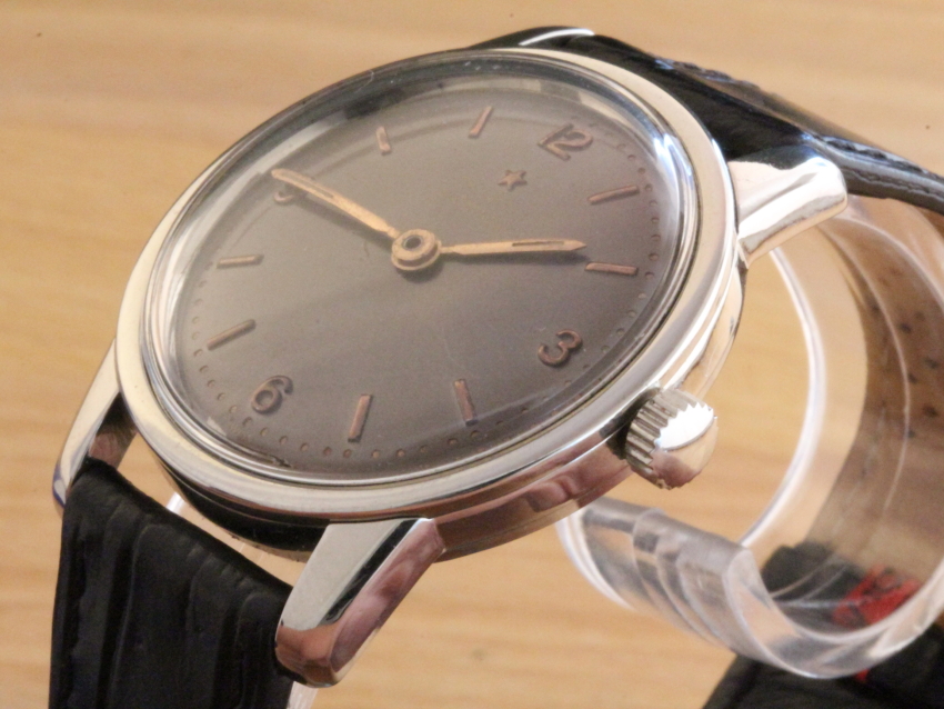 Zum Verkauf steht eine klassische Stahlautomatikuhr von Zenith. Diese wurde in den 50iger Jahren hergestellt. Die Besonderheit dieser Uhr liegt in der Automatik. Es handelt sich um eine Hammer- oder Pendelautomatik oder auch Bumper genannt. Die Uhr ist in einem guten Zustand. Das Uhrwerk Cal.133.8 wurde von 1951 bis 1958 gebaut. Einen kleinen Schönheitsfehler hat die Zenith. Der Aufzug ist defekt. Er hackt und die Krone mit Welle kann man manchmal mit herausziehen. Die Uhr stammt aus einer Privatsammlung und wird im Kundenauftrag verkauft. Das bedeutet es handelt sich um einen Privatverkauf. Die Angaben über den angebotenen Artikel sind nach bestem Wissen und Gewissen gemacht worden. Mit Abgabe eines Gebots nimmt der Bieter den Haftungsausschluss und die AGB von eBay an und akzeptiert, dass es sich bei einer Auktion um eine Versteigerung im Sinne des § 3 Abs. 5 des Fernabsatzgesetzes handelt und dem Höchstbietenden kein Widerrufsrecht gemäß dem Fernabsatzgesetz zusteht. Da es sich um einen Privatverkauf handelt, gehen Sie mit der Abgabe eines Gebotes eine Kaufverpflichtung ein und verzichten auf jegliche Garantie und Gewährleistung, sowie Rückgabe und Umtausch. Bieten Sie nur wenn Sie damit einverstanden sind. |