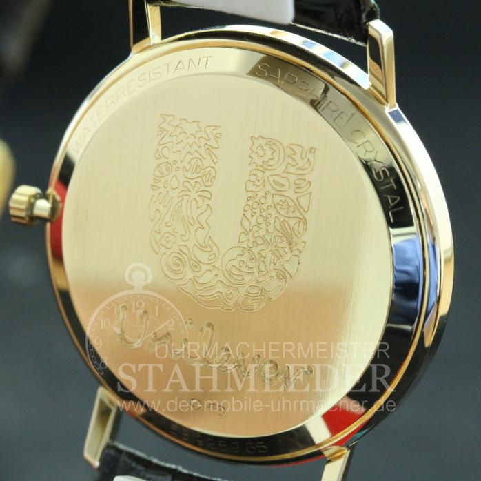 Zum Verkauf steht eine Certina Herrrenuhr in Gelbgold mit Echtlederband von Certina. Die Uhr ist ungetragen, die Batterie wurde erneuert. Es handelt sich um eine klassische elegante Golduhr mit Quarzwerk und Saphirglas. Durch die geringe Bauhöhe von nur 5 Millimetern schmiegt sie sich perfekt an den Arm und passt unter jedes Hemd. Der Käufer erhält eine 12-monatige Funktionsgarantie. Die gesetzlichen Gewährleistungsrechte bleiben unberührt. Mit der Garantie wird gewährleistet, dass die Uhr keine Funktionsmängel aufweist. Die Dauer beschränkt sich auf ein Jahr. Der Garantieanspruch ist schriftlich unter Vorlage des Kaufbeleges geltend zu machen. Der Garantieanspruch ist ausgeschlossen, wenn die Uhr durch eigenes Verschulden beschädigt bzw. zerstört wurde. Die Garantie umfasst nicht das Glas, sowie das Armband. Garantiegeber ist der Verkäufer, für die Inanspruchnahme hat sich der Käufer an folgende Adresse zu wenden. |