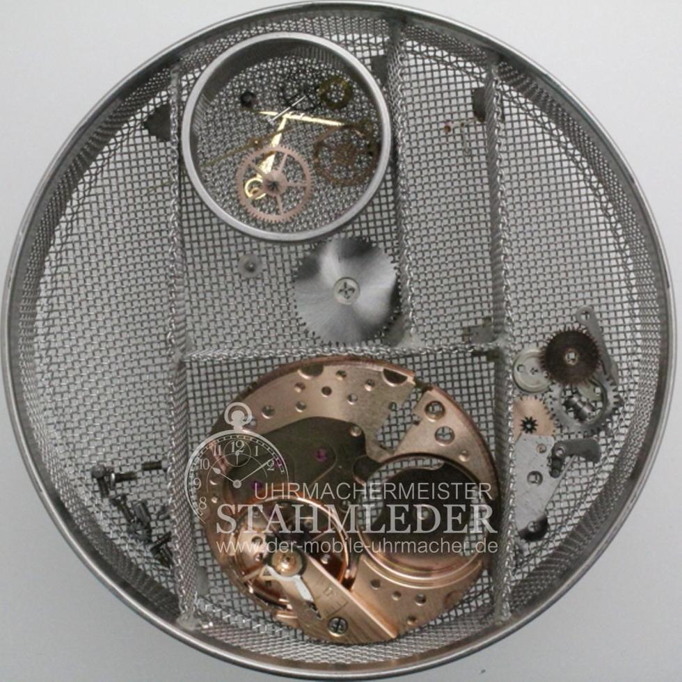 Zum Verkauf steht hier eine elegante Herrenarmbanduhr von Omega inkl.einer Grundüberholung. Omega ist seit vielen Jahren bekannt für Qualität und Langlebigkeit. Sie wurde aufwendig restauriert. Im Inneren der Omega verrichtet das Handaufzugcal. 285 seinen Dienst. Es wurde von 1940 bis 1963 gebaut. Ab 1943 wurde die Incabloc-Stossicherung verbaut. Die Uhr wurde von mir grundüberholt. Bei der Grundüberholung werden nur Originalersatzteile verwendet. Sie möchten auch eine Bilderserie von Ihrer Uhr – kein Problem. Bei der nächsten Wartung Ihrer Uhr kann ich das machen. Dazu senden Sie Ihre Uhr an T.Stahmleder, Friedrich-Ebert-Damm 85D, 22047 Hamburg, meine Berufsbezeichnung auf der Sendung bitte weglassen aus Sicherheitsgründen. Dann erstelle ich Ihnen einen Kostenvoranschlag kostenfrei, Portokosten tragen Sie. Die Echtheit der Uhr wird durch die beigefügten Bilder dokumentiert. Alle hier eingestellten Fotos stammen von dieser angebotenen Uhr. Zum Teil sind die Bilder beim Zerlegen der Uhr gemacht worden vor der Reinigung. Oxydationen und Verunreinigungen sind nach dem Reinigen nicht mehr vorhanden. Alle innerhalb des Angebotes genannten und ggf. durch Dritte geschützten Marken-und Warenzeichen unterliegen uneingeschränkten Bestimmungen des jeweils gültigen Kennzeichenrechts und den Besitzrechten der jeweiligen eingetragenen Eigentümer. Allein aufgrund der bloßen Nennung ist nicht der Schluss zu ziehen, dass Markenzeichen nicht durch Rechte Dritter geschützt sind. Das Copyright für veröffentlichte, von UMM T.Stahmleder, selbst erstellte Objekte bleibt allein bei UMM T.Stahmleder. Eine Vervielfältigung oder Verwendung der Bilder und Texte in anderen elektronischen oder gedruckten Publikationen ist nur mit schriftlicher Zustimmung gestattet. Grundsätzliches: Bei der Reparatur von älteren Uhren ist zu beachten !!! Gerade bei älteren Uhren ist besondere Sorgfalt und Aufwand bei der Reparatur nötig, aber trotz dieser Sorgfalt kann man gewisse Eigenschaften der Uhr nicht immer in den Neuzustand zurücksetzen. Dazu gehören z.B. bei verschlissenen Gehäuse/die Wasserdichtigkeit. Daher grundsätzlich kein Duschen + kein Baden !!! Mit Abgabe eines Gebotes auf dieses Angebot erkennen Sie diese Bedingungen an. |