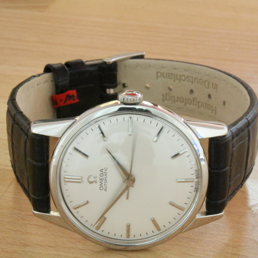 Zum Verkauf steht eine klassische Omega Herrenautomatikuhr aus dem Jahre 1961. Das dreiteilige Gehäuse besteht aus Edelstahl. Im Inneren verrichtet das solide Omega Automatikcal.552 seinen Dienst. Es wurde von 1958 bis 1969 gebaut. Die Omega hat eine Sekundenanzeige im Centrum, Zentralsekunde. Sie möchten auch eine Bilderserie von Ihrer Uhr – kein Problem. Bei der nächsten Wartung Ihrer Uhr kann ich das machen. Dazu senden Sie Ihre Uhr an T.Stahmleder, Friedrich-Ebert-Damm 85D, 22047 Hamburg, meine Berufsbezeichnung auf der Sendung bitte weglassen aus Sicherheitsgründen. Dann erstelle ich Ihnen einen Kostenvoranschlag kostenfrei, Portokosten tragen Sie. Die Echtheit der Uhr wird durch die beigefügten Bilder dokumentiert. Alle hier eingestellten Fotos stammen von dieser angebotenen Uhr. Zum Teil sind die Bilder beim Zerlegen der Uhr gemacht worden vor der Reinigung. Oxydationen und Verunreinigungen sind nach dem Reinigen nicht mehr vorhanden. Alle innerhalb des Angebotes genannten und ggf. durch Dritte geschützten Marken-und Warenzeichen unterliegen uneingeschränkten Bestimmungen des jeweils gültigen Kennzeichenrechts und den Besitzrechten der jeweiligen eingetragenen Eigentümer. Allein aufgrund der bloßen Nennung ist nicht der Schluss zu ziehen, dass Markenzeichen nicht durch Rechte Dritter geschützt sind. Das Copyright für veröffentlichte, von UMM T.Stahmleder, selbst erstellte Objekte bleibt allein bei UMM T.Stahmleder. Eine Vervielfältigung oder Verwendung der Bilder und Texte in anderen elektronischen oder gedruckten Publikationen ist nur mit schriftlicher Zustimmung gestattet. Grundsätzliches: Bei der Reparatur von älteren Uhren ist zu beachten !!! Gerade bei älteren Uhren ist besondere Sorgfalt und Aufwand bei der Reparatur nötig, aber trotz dieser Sorgfalt kann man gewisse Eigenschaften der Uhr nicht immer in den Neuzustand zurücksetzen. Dazu gehören z.B. bei verschlissenen Gehäuse/die Wasserdichtigkeit. Daher grundsätzlich kein Duschen + kein Baden !!!