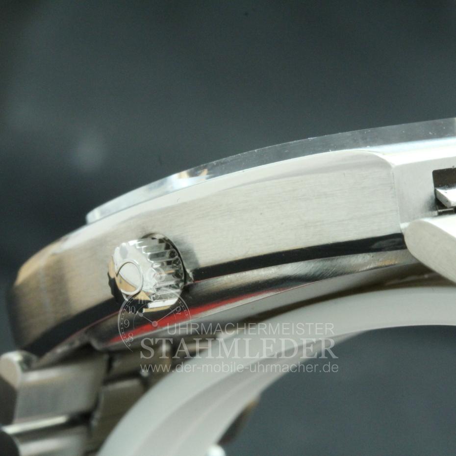 Zum Verkauf steht eine klassische Omega Constellation Chronometer Herrenautomatikuhr aus dem Jahre 1971 inkl. eines kompletten Unterhaltsdienstes. Im Inneren verrichtet das solide Omega Automatikcal.1001 seinen Dienst. Der Kalender kann über eine Schnellschaltung korregiert werden, aber wie bei allen Kalenderuhren darf die Schnellkorrektur nicht zwischen 21 Uhr und 3 Uhr bedient werden !! Das Zifferblatt wurde erneuert da das originale grüne Zifferblatt stark beschädigt war.