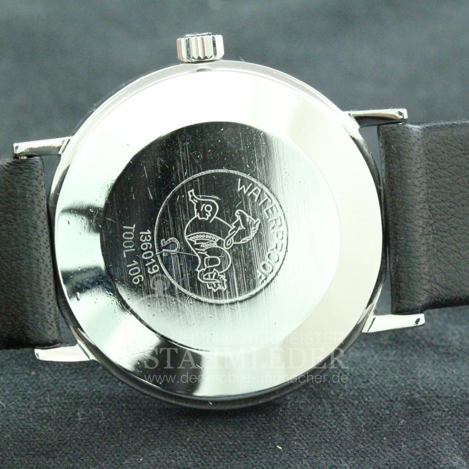 Zum Verkauf steht eine klassische Omega DeVille in Stahl mit Handaufzug inkl. eines kompletten Wartungsdienstes. Ein Klassiker in Form und Design. Durch das schlichte, edle Design ist eine gute Ablesbarkeit garantiert. Omega ist seit vielen Jahren bekannt für Qualität und Langlebigkeit. Bei der Grundüberholung wurden nur Originalersatzteile verwendet. Das Aufarbeiten des Gehäuse sowie ein neues, schwarzes Lederband mit matter Oberfläche und einer Omega-Dornenschließe in Stahl sind inklusivie. Im Inneren verrichtet das solide Omega Cal.613 seinen Dienst. Dieses Uhrwerk wurde von 1967 bis 1973 gebaut. Der Gesamtzustand der Uhr ist sehr gut. |