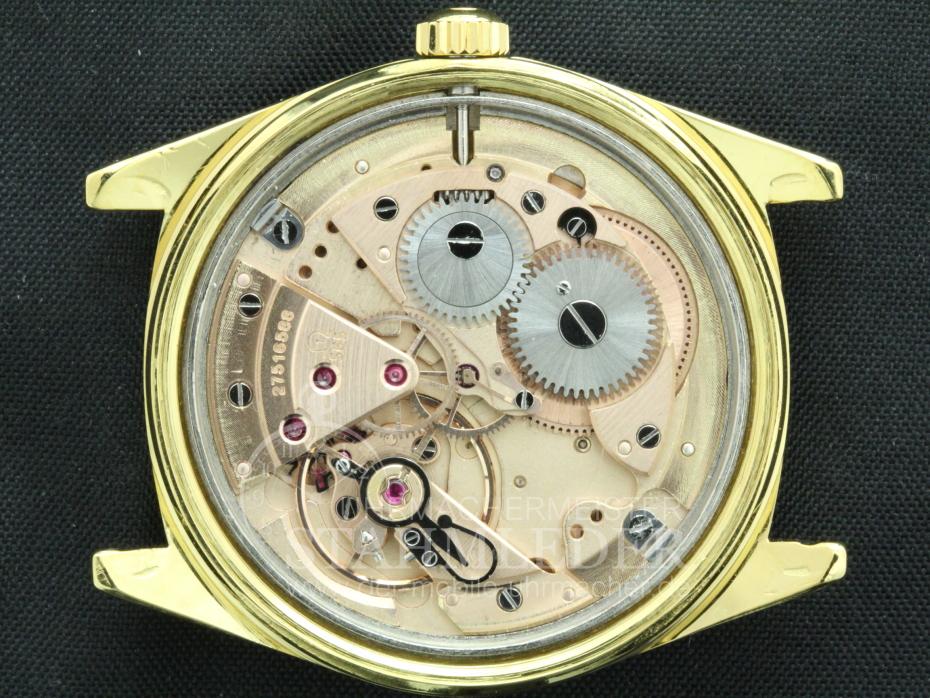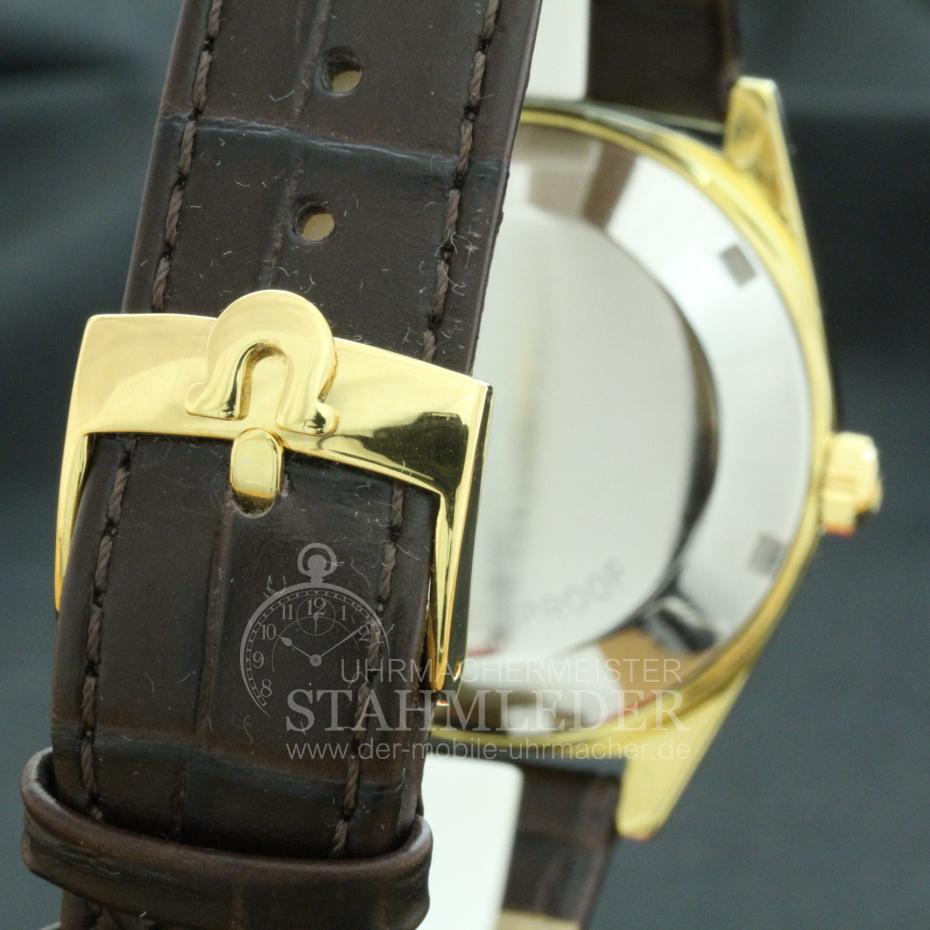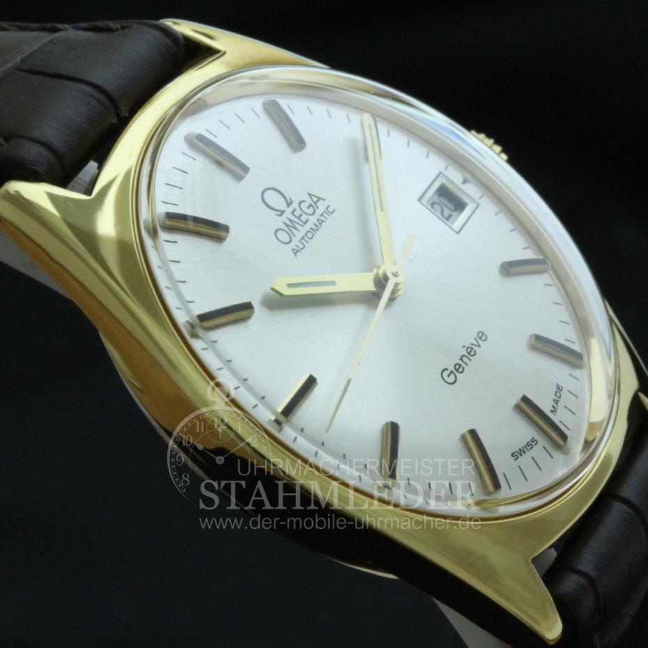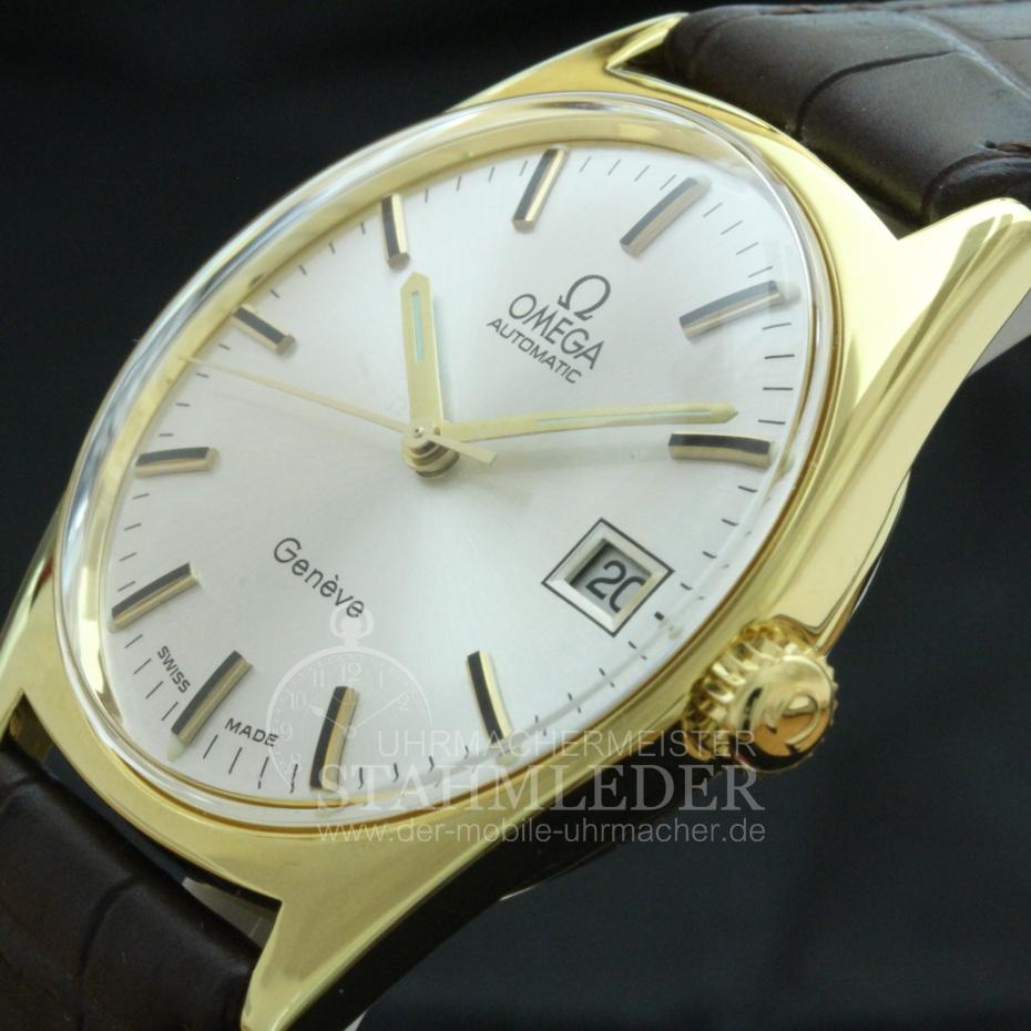 Zum Verkauf steht eine vergoldete Herrenuhr Omega Automatik Geneve inkl. eines kompletten Unterhaltsdienstes. Omega ist seit vielen Jahren bekannt für Qualität und Langlebigkeit. Im Inneren der Omega verrichtet das Automatik Cal. 565 seinen Dienst. Es wurde von 1966 bis 1969 gebaut. Das Besondere am Cal. 565 ist die Schnellschaltung des Kalenders. Die Krone in 1.Rastposition =Zeigerstellung. Zieht man die Krone in die 2 Position wird der Kalender weitergeschaltet bei jedem Ziehen. Aber wie immer Vorsicht !! Zwischen 21 Uhr und 6 Uhr die Schnellschaltung nicht bedienen !! Das Aufarbeiten des Gehäuse sowie ein neues dunkelbraunes Lederband mit original Dornenschließe von Omega sind inklusive.