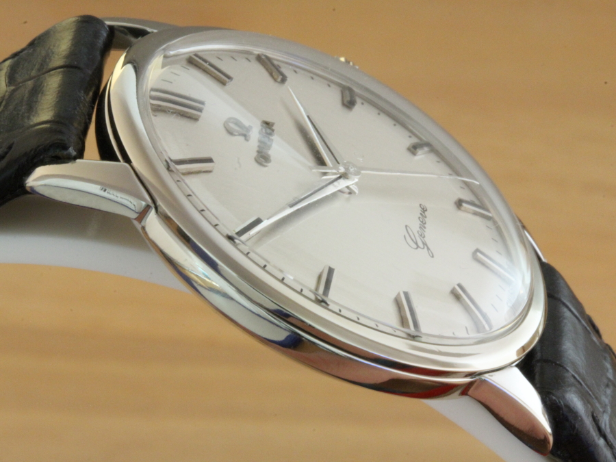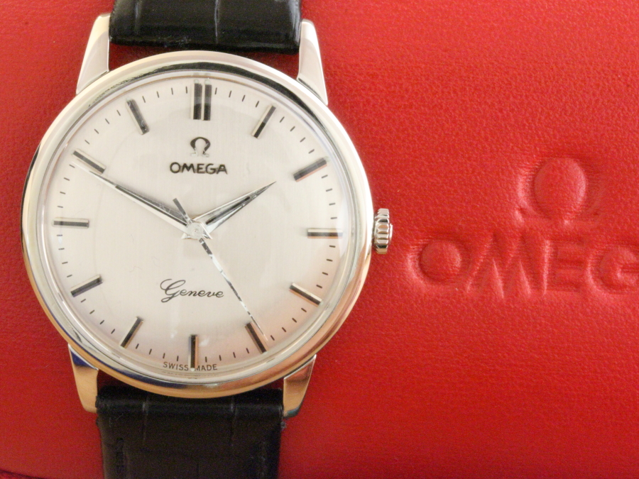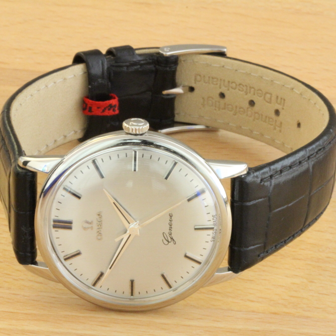 Zum Verkauf steht eine klassische Omega Geneve Herrenuhr mit Handaufzug aus dem Jahre 1961 in Stahl. Im Inneren verrichtet das solide Omega Cal.600 seinen Dienst. Es wurde von 1960 bis 1964 gebaut. Die Omega hat eine Sekundenanzeige im Centrum, Zentralsekunde. Der Käufer erhält eine 12-monatige Funktionsgarantie. Die gesetzlichen Gewährleistungsrechte bleiben unberührt. Mit der Garantie wird gewährleistet, dass die Uhr keine Funktionsmängel aufweist. Die Dauer beschränkt sich auf ein Jahr. Der Garantieanspruch ist schriftlich unter Vorlage des Kaufbeleges geltend zu machen. Der Garantieanspruch ist ausgeschlossen, wenn die Uhr durch eigenes Verschulden beschädigt bzw. zerstört wurde. Die Garantie umfasst nicht das Glas, sowie das Armband. Garantiegeber ist der Verkäufer, für die Inanspruchnahme hat sich der Käufer an folgende Adresse zu wenden. Sie möchten auch eine Bilderserie von Ihrer Uhr – kein Problem. Bei der nächsten Wartung Ihrer Uhr kann ich das machen. Dazu senden Sie Ihre Uhr an T.Stahmleder, Friedrich-Ebert-Damm 85D, 22047 Hamburg, meine Berufsbezeichnung auf der Sendung bitte weglassen aus Sicherheitsgründen. Dann erstelle ich Ihnen einen Kostenvoranschlag kostenfrei, Portokosten tragen Sie. Die Echtheit der Uhr wird durch die beigefügten Bilder dokumentiert. Alle hier eingestellten Fotos stammen von dieser angebotenen Uhr. Zum Teil sind die Bilder beim Zerlegen der Uhr gemacht worden vor der Reinigung. Oxydationen und Verunreinigungen sind nach dem Reinigen nicht mehr vorhanden. Alle innerhalb des Angebotes genannten und ggf. durch Dritte geschützten Marken-und Warenzeichen unterliegen uneingeschränkten Bestimmungen des jeweils gültigen Kennzeichenrechts und den Besitzrechten der jeweiligen eingetragenen Eigentümer. Allein aufgrund der bloßen Nennung ist nicht der Schluss zu ziehen, dass Markenzeichen nicht durch Rechte Dritter geschützt sind. Das Copyright für veröffentlichte, von UMM T.Stahmleder, selbst erstellte Objekte bleibt allein bei UMM T.Stahmleder. Eine Vervielfältigung oder Verwendung der Bilder und Texte in anderen elektronischen oder gedruckten Publikationen ist nur mit schriftlicher Zustimmung gestattet. Grundsätzliches: Bei der Reparatur von älteren Uhren ist zu beachten !!! Gerade bei älteren Uhren ist besondere Sorgfalt und Aufwand bei der Reparatur nötig, aber trotz dieser Sorgfalt kann man gewisse Eigenschaften der Uhr nicht immer in den Neuzustand zurücksetzen. Dazu gehören z.B. bei verschlissenen Gehäuse/die Wasserdichtigkeit. Daher grundsätzlich kein Duschen + kein Baden !!!
