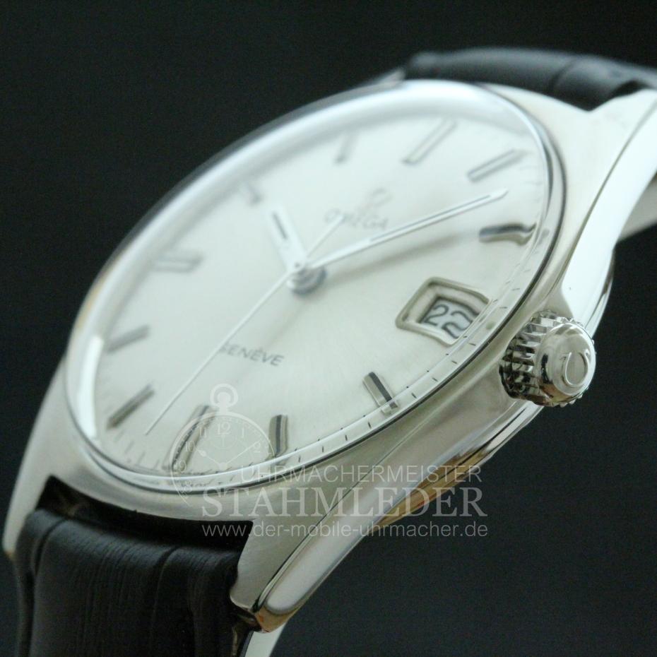 Zum Verkauf steht eine klassische Omega Geneve Herrenuhr in Stahl mit Handaufzug aus dem Jahre 1969 inkl. eines kompletten Wartungsdienstes. Das zweiteilige Gehäuse besteht aus Edelstahl. Im Inneren verrichtet das solide Omega Cal.613 seinen Dienst. Es wurde von 1967 bis 1973 gebaut. Im Centrum der Omega befindet sich eine Sekundenanzeige. Die Kalenderanzeige bei "3 Uhr" ist mit einer Schnellschaltung ausgestattet. Die Schnellschaltung wird durch Ziehen der Krone betätigt, aber auch hier, wie bei allen Kalenderschnellschaltungen, bitte auf darauf achten das die Schnellschaltung nicht zwischen 21Uhr - 3 Uhr benutzt wird. |