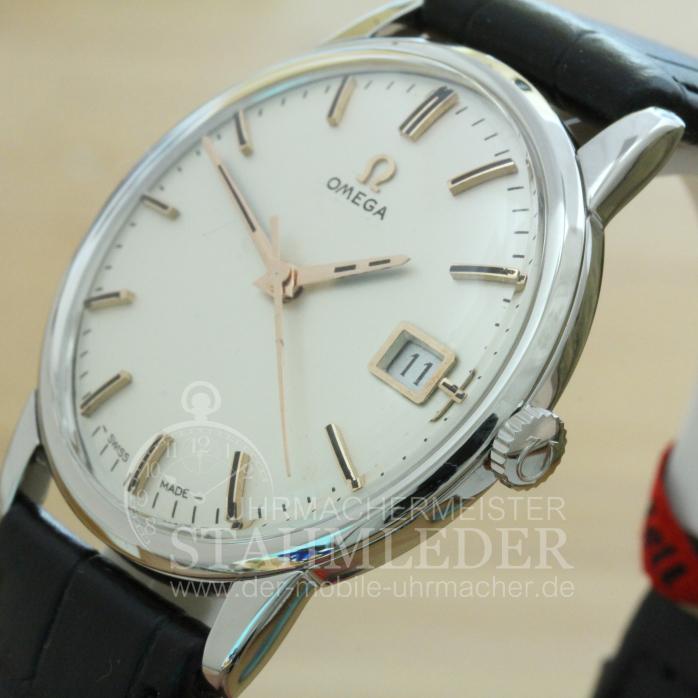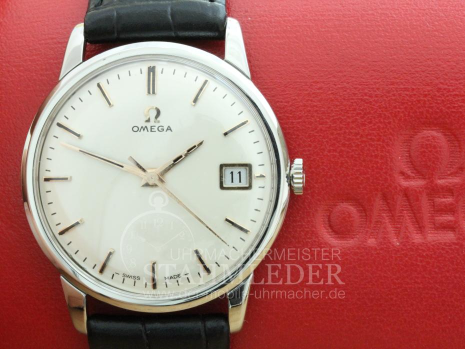 Zum Verkauf steht eine klassische Omega Herrenuhr mit Handaufzug aus dem Jahre 1965 mit Kalender. Das Gehäuse besteht aus Edelstahl. Im Inneren verrichtet das solide Omega Cal.611 seinen Dienst. Es wurde von 1962 bis 1970 gebaut. Die Omega hat eine Sekundenanzeige im Centrum, Zentralsekunde. Die Uhr wurde von mir grundüberholt. Bei der Grundüberholung werden nur Originalersatzteile verwendet. Das Gehäuse wurde gereinigt und überarbeitet. Auch nach dem Kauf bin ich für Sie da wenn es Unklarheiten geben sollte oder nach einigen Jahren zum Service Ihrer Uhren. Sie möchten auch eine Bilderserie von Ihrer Uhr – kein Problem. Bei der nächsten Wartung Ihrer Uhr kann ich das machen. Dazu senden Sie Ihre Uhr an T.Stahmleder, Friedrich-Ebert-Damm 85D, 22047 Hamburg, meine Berufsbezeichnung auf der Sendung bitte weglassen aus Sicherheitsgründen. Dann erstelle ich Ihnen einen Kostenvoranschlag kostenfrei, Portokosten tragen Sie. Die Echtheit der Uhr wird durch die beigefügten Bilder dokumentiert. Alle hier eingestellten Fotos stammen von dieser angebotenen Uhr. Zum Teil sind die Bilder beim Zerlegen der Uhr gemacht worden vor der Reinigung. Oxydationen und Verunreinigungen sind nach dem Reinigen nicht mehr vorhanden. Alle innerhalb des Angebotes genannten und ggf. durch Dritte geschützten Marken-und Warenzeichen unterliegen uneingeschränkten Bestimmungen des jeweils gültigen Kennzeichenrechts und den Besitzrechten der jeweiligen eingetragenen Eigentümer. Allein aufgrund der bloßen Nennung ist nicht der Schluss zu ziehen, dass Markenzeichen nicht durch Rechte Dritter geschützt sind. Das Copyright für veröffentlichte, von UMM T.Stahmleder, selbst erstellte Objekte bleibt allein bei UMM T.Stahmleder. Eine Vervielfältigung oder Verwendung der Bilder und Texte in anderen elektronischen oder gedruckten Publikationen ist nur mit schriftlicher Zustimmung gestattet. Grundsätzliches: Bei der Reparatur von älteren Uhren ist zu beachten !!! Gerade bei älteren Uhren ist besondere Sorgfalt und Aufwand bei der Reparatur nötig, aber trotz dieser Sorgfalt kann man gewisse Eigenschaften der Uhr nicht immer in den Neuzustand zurücksetzen. Dazu gehören z.B. bei verschlissenen Gehäuse/die Wasserdichtigkeit. Daher grundsätzlich kein Duschen + kein Baden !!! Der Käufer erhält eine 12-monatige Funktionsgarantie. Die gesetzlichen Gewährleistungsrechte bleiben unberührt. Mit der Garantie wird gewährleistet, dass die Uhr keine Funktionsmängel aufweist. Die Dauer beschränkt sich auf ein Jahr. Der Garantieanspruch ist schriftlich unter Vorlage des Kaufbeleges geltend zu machen. Der Garantieanspruch ist ausgeschlossen, wenn die Uhr durch eigenes Verschulden beschädigt bzw. zerstört wurde. Die Garantie umfasst nicht das Glas, sowie das Armband. Garantiegeber ist der Verkäufer, für die Inanspruchnahme hat sich der Käufer an folgende Adresse zu wenden. Die EU-Kommission hat eine Internetplattform zur Online-Beilegung von Streitigkeiten ( sog. "OS-Plattform ) geschaffen. Die OD-Plattformdient als Anlaufstelle zur außergerichtlichen Beilegung von Streitigkeiten betreffend vertragliche Verpflichtungen, die aus Online-Kaufverträgen erwachsen. Der Kunde kann die OS-Plattform unter dem folgenden Link errreichen:http://ec.europa.eu/consumers/odr
