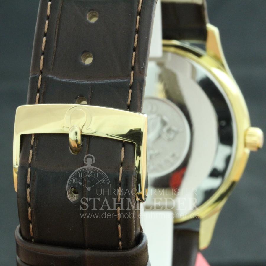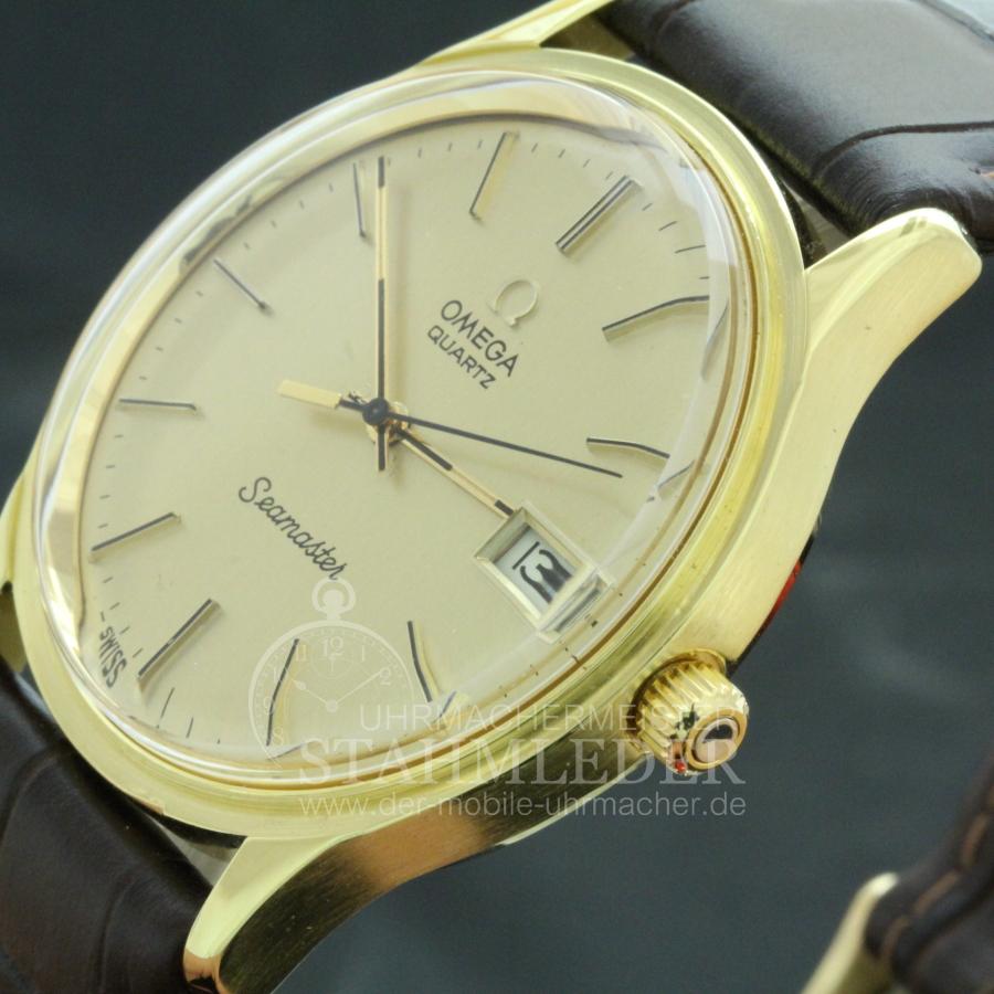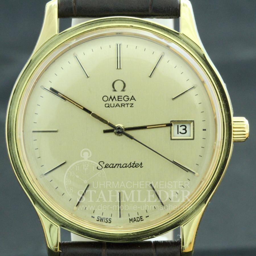 Zum Verkauf steht eine vergoldete Omega Seamaster Quarzuhr inkl. einem kompletten Unterhaltsdienst. Ein Klassiker in Form und Design. Durch das schlichte und edle Design ist eine gute Ablesbarkeit garantiert. Omega ist seit vielen Jahren bekannt für Qualität und Langlebigkeit. Die angebotene Uhr wurde von mir grundüberholt. Bei der Grundüberholung wurden nur Originalersatzteile verwendet. Das Aufarbeiten des Gehäuse sowie ein neues, dunkelbraunes Lederband mit matter Oberfläche und einer vergoldeten Dornenschließe sind inklusivie. Die Bedienung/Zeigerstellung erfolgt recht einfach über den in der Krone integrierten Drücker. Ein Druck auf den Drücker und der Sekundenzeiger bleibt stehen. Durch nochmaliges loslassen und eindrücken fängt der Sekundenzeiger und der Minutenzeiger an zu laufen. Dadurch ist ein Sekundengenaues Einstellen der Uhr möglich. Der Stundenzeiger und der Kalender lassen sich durch herrausziehen der Krone einstellen. Die Echtheit der Uhr wird durch die beigefügten Bilder dokumentiert. Alle hier eingestellten Fotos stammen von dieser angebotenen Uhr. Zum Teil sind die Bilder beim Zerlegen der Uhr gemacht worden vor der Reinigung. Oxydationen und Verunreinigungen sind nach dem Reinigen nicht mehr vorhanden. Alle innerhalb des Angebotes genannten und ggf. durch Dritte geschützten Marken-und Warenzeichen unterliegen uneingeschränkten Bestimmungen des jeweils gültigen Kennzeichenrechts und den Besitzrechten der jeweiligen eingetragenen Eigentümer. Allein aufgrund der bloßen Nennung ist nicht der Schluss zu ziehen, dass Markenzeichen nicht durch Rechte Dritter geschützt sind. Das Copyright für veröffentlichte, von UMM T.Stahmleder, selbst erstellte Objekte bleibt allein bei UMM T.Stahmleder. Eine Vervielfältigung oder Verwendung der Bilder und Texte in anderen elektronischen oder gedruckten Publikationen ist nur mit schriftlicher Zustimmung gestattet. Der Käufer erhält eine 12-monatige Funktionsgarantie. Die gesetzlichen Gewährleistungsrechte bleiben unberührt. Mit der Garantie wird gewährleistet, dass die Uhr keine Funktionsmängel aufweist. Die Dauer beschränkt sich auf ein Jahr. Der Garantieanspruch ist schriftlich unter Vorlage des Kaufbeleges geltend zu machen. Der Garantieanspruch ist ausgeschlossen, wenn die Uhr durch eigenes Verschulden beschädigt bzw. zerstört wurde. Die Garantie umfasst nicht das Glas, sowie das Armband. Garantiegeber ist der Verkäufer, für die Inanspruchnahme hat sich der Käufer an folgende Adresse zu wenden. Die EU-Kommission hat eine Internetplattform zur Online-Beilegung von Streitigkeiten ( sog. "OS-Plattform ) geschaffen. Die OD-Plattformdient als Anlaufstelle zur außergerichtlichen Beilegung von Streitigkeiten betreffend vertragliche Verpflichtungen, die aus Online-Kaufverträgen erwachsen. Der Kunde kann die OS-Plattform unter dem folgenden Link errreichen:http://ec.europa.eu/consumers/odr