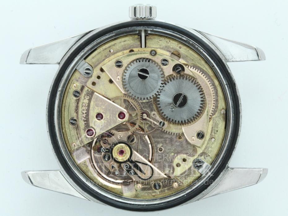 Zum Verkauf steht eine klassische Omega Seamaster Herrenautomatikuhr aus dem Jahre 1959. Im Inneren verrichtet das solide Omega Automatikcal.562 seinen Dienst. Es wurde von 1958 bis 1967 gebaut. Die Omega hat eine Sekundenanzeige im Centrum. Die Seamaster wurde von mir grundüberholt, dabei wurden nur Originalteile verbaut. Die Echtheit der Uhr wird durch die beigefügten Bilder dokumentiert. Alle hier eingestellten Fotos stammen von dieser angebotenen Uhr. Zum Teil sind die Bilder beim Zerlegen der Uhr gemacht worden vor der Reinigung. Oxydationen und Verunreinigungen sind nach dem Reinigen nicht mehr vorhanden. Alle innerhalb des Angebotes genannten und ggf. durch Dritte geschützten Marken-und Warenzeichen unterliegen uneingeschränkten Bestimmungen des jeweils gültigen Kennzeichenrechts und den Besitzrechten der jeweiligen eingetragenen Eigentümer. Allein aufgrund der bloßen Nennung ist nicht der Schluss zu ziehen, dass Markenzeichen nicht durch Rechte Dritter geschützt sind. Das Copyright für veröffentlichte, von UMM T.Stahmleder, selbst erstellte Objekte bleibt allein bei UMM T.Stahmleder. Eine Vervielfältigung oder Verwendung der Bilder und Texte in anderen elektronischen oder gedruckten Publikationen ist nur mit schriftlicher Zustimmung gestattet. Grundsätzliches: Bei der Reparatur von älteren Uhren ist zu beachten !!! Gerade bei älteren Uhren ist besondere Sorgfalt und Aufwand bei der Reparatur nötig, aber trotz dieser Sorgfalt kann man gewisse Eigenschaften der Uhr nicht immer in den Neuzustand zurücksetzen. Dazu gehören z.B. bei verschlissenen Gehäuse/die Wasserdichtigkeit. Daher grundsätzlich kein Duschen + kein Baden !!! Der Käufer erhält eine 12-monatige Funktionsgarantie. Die gesetzlichen Gewährleistungsrechte bleiben unberührt. Mit der Garantie wird gewährleistet, dass die Uhr keine Funktionsmängel aufweist. Die Dauer beschränkt sich auf ein Jahr. Der Garantieanspruch ist schriftlich unter Vorlage des Kaufbeleges geltend zu machen. Der Garantieanspruch ist ausgeschlossen, wenn die Uhr durch eigenes Verschulden beschädigt bzw. zerstört wurde. Die Garantie umfasst nicht das Glas, sowie das Armband. Garantiegeber ist der Verkäufer, für die Inanspruchnahme hat sich der Käufer an folgende Adresse zu wenden. Die EU-Kommission hat eine Internetplattform zur Online-Beilegung von Streitigkeiten ( sog. "OS-Plattform ) geschaffen. Die OD-Plattformdient als Anlaufstelle zur außergerichtlichen Beilegung von Streitigkeiten betreffend vertragliche Verpflichtungen, die aus Online-Kaufverträgen erwachsen. Der Kunde kann die OS-Plattform unter dem folgenden Link errreichen:http://ec.europa.eu/consumers/odr