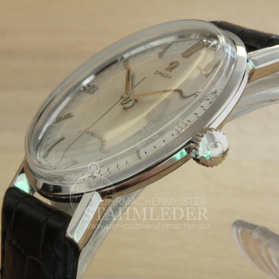 Zum Verkauf steht eine klassische Omega Seamaster Herrenuhr mit Handaufzug aus dem Jahre 1962. Im Inneren verrichtet das solide Omega Cal.600 seinen Dienst. Es wurde von 1960 bis 1964 gebaut. Die Omega hat eine Sekundenanzeige im Centrum, Zentralsekunde. Sie möchten auch eine Bilderserie von Ihrer Uhr – kein Problem. Bei der nächsten Wartung Ihrer Uhr kann ich das machen. Dazu senden Sie Ihre Uhr an T.Stahmleder, Friedrich-Ebert-Damm 85D, 22047 Hamburg, meine Berufsbezeichnung auf der Sendung bitte weglassen aus Sicherheitsgründen. Dann erstelle ich Ihnen einen Kostenvoranschlag kostenfrei, Portokosten tragen Sie. Die Echtheit der Uhr wird durch die beigefügten Bilder dokumentiert. Alle hier eingestellten Fotos stammen von dieser angebotenen Uhr. Zum Teil sind die Bilder beim Zerlegen der Uhr gemacht worden vor der Reinigung. Oxydationen und Verunreinigungen sind nach dem Reinigen nicht mehr vorhanden. Alle innerhalb des Angebotes genannten und ggf. durch Dritte geschützten Marken-und Warenzeichen unterliegen uneingeschränkten Bestimmungen des jeweils gültigen Kennzeichenrechts und den Besitzrechten der jeweiligen eingetragenen Eigentümer. Allein aufgrund der bloßen Nennung ist nicht der Schluss zu ziehen, dass Markenzeichen nicht durch Rechte Dritter geschützt sind. Das Copyright für veröffentlichte, von UMM T.Stahmleder, selbst erstellte Objekte bleibt allein bei UMM T.Stahmleder. Eine Vervielfältigung oder Verwendung der Bilder und Texte in anderen elektronischen oder gedruckten Publikationen ist nur mit schriftlicher Zustimmung gestattet. Grundsätzliches: Bei der Reparatur von älteren Uhren ist zu beachten !!! Gerade bei älteren Uhren ist besondere Sorgfalt und Aufwand bei der Reparatur nötig, aber trotz dieser Sorgfalt kann man gewisse Eigenschaften der Uhr nicht immer in den Neuzustand zurücksetzen. Dazu gehören z.B. bei verschlissenen Gehäuse/die Wasserdichtigkeit. Daher grundsätzlich kein Duschen + kein Baden !!!