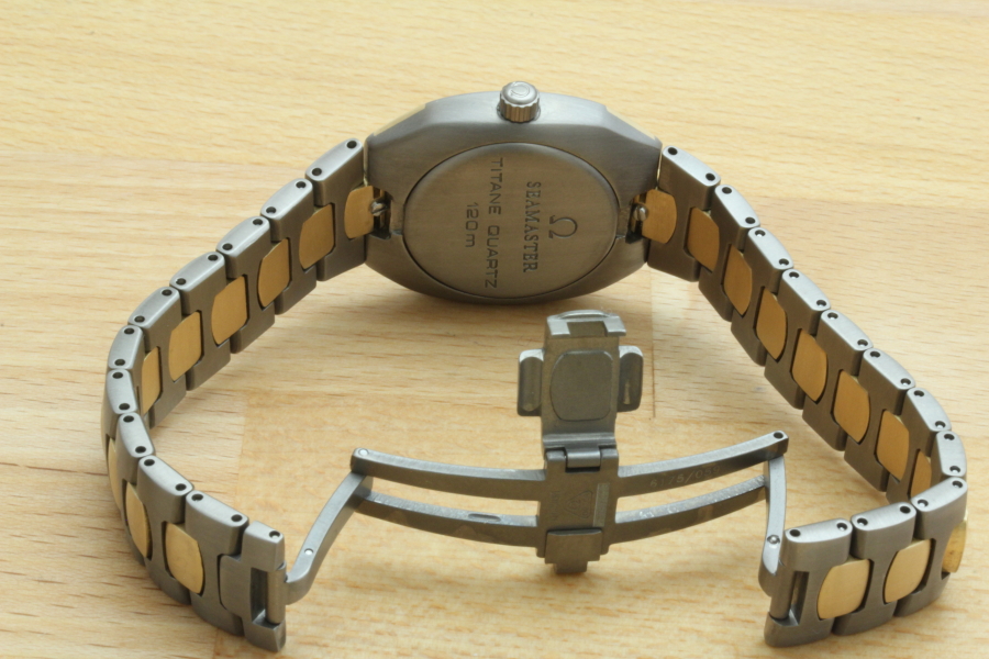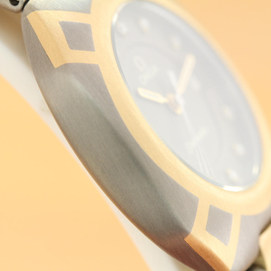 Zum Verkauf steht eine zeitlos, schöne Omega Seamaster Polaris Damenuhr aus dem Jahre 1982 im Titangehäuse mit 18kt Goldeinlagen und Brilliantzifferblatt. Das Band besteht ebenfalls aus Titan mit massiven 18kt Goldelementen. Im Inneren verrichtet das solide Omega Quarzcal.1380 seinen Dienst. Der Gesamtzustand der Uhr ist sehr gut.