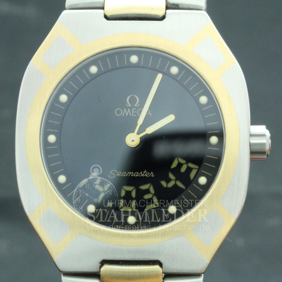 Zum Verkauf steht eine Omega Seamaster Polaris Herrenuhr in Stahl/Gold mit Stahl/Goldband. Gold = Goldeinlagen 18ct = 750GG inkl. eines kompletten Wartungsdienstes. Es handelt sich um eine Quatz-Multifunktionsuhr mit Hybridanzeige. Diese Uhr sieht nicht nur elegant und sportlich aus sondern sie ist es auch. Die Uhr mit den acht Gesichtern und der magischen Krone, bei der es genügt die Krone vor-oder rückwärts zu drehen um eine der acht programmierbaren Anzeigen abzurufen. Einfache und permanente analog-Zeitanzeige von Stunden und Minuten und zusätzlich auf der mysteriösen LCD Anzeige die Digitalangaben der Uhrzeit, ewiger Kalender, rückwärtslaufender Zähler, zweite Zeitzone, Alarm/Wecker und 100stel-Sekunden Digital Chronograph. Diese Modell wurde ab 1988 so wie angeboten gebaut. Der Käufer erhält eine 12-monatige Funktionsgarantie. Die gesetzlichen Gewährleistungsrechte bleiben unberührt. Mit der Garantie wird gewährleistet, dass die Uhr keine Funktionsmängel aufweist. Die Dauer beschränkt sich auf ein Jahr. Der Garantieanspruch ist schriftlich unter Vorlage des Kaufbeleges geltend zu machen. Der Garantieanspruch ist ausgeschlossen, wenn die Uhr durch eigenes Verschulden beschädigt bzw. zerstört wurde. Die Garantie umfasst nicht das Glas, sowie das Armband. Garantiegeber ist der Verkäufer, für die Inanspruchnahme hat sich der Käufer an folgende Adresse zu wenden. |