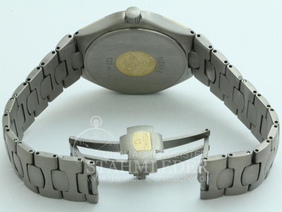Zum Verkauf steht eine Omega Seamaster Polaris Herrenuhr in Titan/Gold mit Titanband. Gold = Goldeinlagen 18kt = 750GG inkl. eines kompletten Wartungsdienstes. Es handelt sich um eine Quarz-Multifunktionsuhr mit Hybridanzeige. Diese Uhr sieht nicht nur elegant und sportlich aus sondern sie ist es auch. Die Uhr mit den acht Gesichtern und der magischen Krone, bei der es genügt die Krone vor-oder rückwärts zu drehen um eine der acht programmierbaren Anzeigen abzurufen. Einfache und permanente analog-Zeitanzeige von Stunden und Minuten und zusätzlich auf der mysteriösen LCD Anzeige die Digitalangaben der Uhrzeit, ewiger Kalender, rückwärtslaufender Zähler, zweite Zeitzone, Alarm/Wecker und 100stel-Sekunden Digital Chronograph. Es handelt sich hier um die seltene große Ausführung !! Der Käufer erhält eine 12-monatige Funktionsgarantie. Die gesetzlichen Gewährleistungsrechte bleiben unberührt. Mit der Garantie wird gewährleistet, dass die Uhr keine Funktionsmängel aufweist. Die Dauer beschränkt sich auf ein Jahr. Der Garantieanspruch ist schriftlich unter Vorlage des Kaufbeleges geltend zu machen. Der Garantieanspruch ist ausgeschlossen, wenn die Uhr durch eigenes Verschulden beschädigt bzw. zerstört wurde. Die Garantie umfasst nicht das Glas, sowie das Armband. Garantiegeber ist der Verkäufer, für die Inanspruchnahme hat sich der Käufer an folgende Adresse zu wenden. |