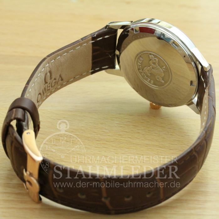 Zum Verkauf steht eine klassische Herrenuhr Omega Seamaster Automatik in Stahl inkl. eines kompletten Wartungsdienstes. Omega ist seit vielen Jahren bekannt für Qualität und Langlebigkeit. Im Inneren der Omega verrichtet das Automatik Cal. 565 seinen Dienst. Es wurde von 1966 bis 1969 gebaut. Das Besondere am Cal. 565 ist die Schnellschaltung des Kalenders. Die Krone in 1.Rastposition =Zeigerstellung. Zieht man die Krone in die 2 Position wird der Kalender weitergeschaltet bei jedem Ziehen. Aber wie immer Vorsicht !! Zwischen 21 Uhr und 6 Uhr die Schnellschaltung nicht bedienen !! Die Besonderheit diese Seamaster ist das Seamaster Logo auf dem Boden. Es ist im Originalzustand und noch nicht glattpoliert. Das Aufarbeiten des Gehäuse sowie ein neues braunes Lederband mit Dornenschließe, rosévergoldet-passend zu den Indexen sind inklusive. Auch nach dem Kauf bin ich für Sie da wenn es Unklarheiten geben sollte oder nach einigen Jahren zum Service Ihrer Uhren. |