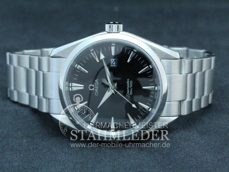 Zum Verkauf steht eine Omega Seamaster Aqua Terra in Stahl, 39mm, mit Quarzwerk Omega 1538 aus dem Jahre 2004 inkl. eines kompletten Wartungsdienstes. Die Omega hat eine Sekundenanzeige im Centrum und eine Kalenderanzeige. Eine gute Ablesbarkeit ist durch die Größe des Zifferblattes und durch den Farbkontrast Zifferblatt - Zeiger gewährleistet. Die Einstellung der Uhr erfolgt über die verschraubte Krone. Die Uhr wurde von mir grundüberholt. Bei der Grundüberholung wurden nur Originalersatzteile verwendet. Das Stahlband wurde gereinigt und überarbeitet. Auch nach dem Kauf bin ich für Sie da wenn es Unklarheiten geben sollte oder nach einigen Jahren zum Service Ihrer Uhren. . Der Käufer erhält eine 12-monatige Funktionsgarantie. Die gesetzlichen Gewährleistungsrechte bleiben unberührt. Mit der Garantie wird gewährleistet, dass die Uhr keine Funktionsmängel aufweist. Die Dauer beschränkt sich auf ein Jahr. Der Garantieanspruch ist schriftlich unter Vorlage des Kaufbeleges geltend zu machen. Der Garantieanspruch ist ausgeschlossen, wenn die Uhr durch eigenes Verschulden beschädigt bzw. zerstört wurde. Die Garantie umfasst nicht das Glas, sowie das Armband. Garantiegeber ist der Verkäufer, für die Inanspruchnahme hat sich der Käufer an folgende Adresse zu wenden.