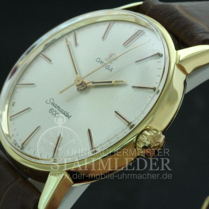 Zum Verkauf steht eine klassische Omega Seamaster600 Herrenuhr mit Handaufzug aus dem Jahre 1965 inkl. einem kompletten Unterhaltsdienst. Das Gehäuse ist vergoldet. Die 600 auf dem Zifferblatt deutet auf die Caliber-Familie hin. In diesem Fall das Cal.601. Es wurde von 1962 bis 1970 gebaut. Die Omega hat eine Sekundenanzeige im Centrum, Zentralsekunde.