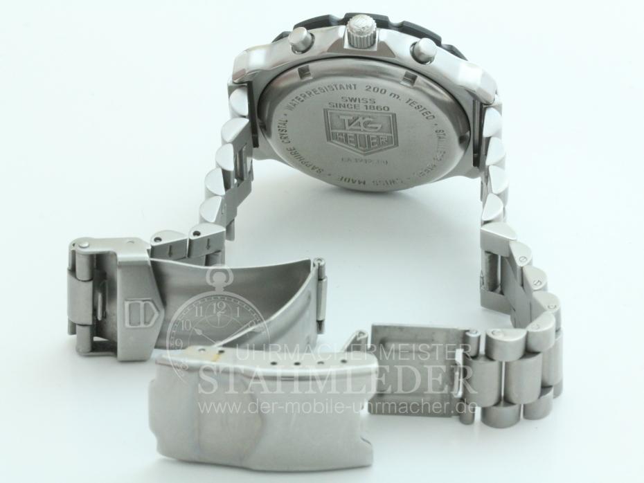 Zum Verkauf steht hier ein TAG Heuer Chronograph Formula1. Die Uhr ist bis 200 Meter wasserdicht und hat die Wasserdichtigkeitsprüfung problemlos überstanden. Sie möchten auch eine Bilderserie von Ihrer Uhr – kein Problem. Bei der nächsten Wartung Ihrer Uhr kann ich das machen. Dazu senden Sie Ihre Uhr an T.Stahmleder, Friedrich-Ebert-Damm 85D, 22047 Hamburg, meine Berufsbezeichnung auf der Sendung bitte weglassen aus Sicherheitsgründen. Dann erstelle ich Ihnen einen Kostenvoranschlag kostenfrei, Portokosten tragen Sie. Die Echtheit der Uhr wird durch die beigefügten Bilder dokumentiert. Alle hier eingestellten Fotos stammen von dieser angebotenen Uhr. Zum Teil sind die Bilder beim Zerlegen der Uhr gemacht worden vor der Reinigung. Oxydationen und Verunreinigungen sind nach dem Reinigen nicht mehr vorhanden. Alle innerhalb des Angebotes genannten und ggf. durch Dritte geschützten Marken-und Warenzeichen unterliegen uneingeschränkten Bestimmungen des jeweils gültigen Kennzeichenrechts und den Besitzrechten der jeweiligen eingetragenen Eigentümer. Allein aufgrund der bloßen Nennung ist nicht der Schluss zu ziehen, dass Markenzeichen nicht durch Rechte Dritter geschützt sind. Das Copyright für veröffentlichte, von UMM T.Stahmleder, selbst erstellte Objekte bleibt allein bei UMM T.Stahmleder. Eine Vervielfältigung oder Verwendung der Bilder und Texte in anderen elektronischen oder gedruckten Publikationen ist nur mit schriftlicher Zustimmung gestattet. Der Käufer erhält eine 12-monatige Funktionsgarantie. Die gesetzlichen Gewährleistungsrechte bleiben unberührt. Mit der Garantie wird gewährleistet, dass die Uhr keine Funktionsmängel aufweist. Die Dauer beschränkt sich auf ein Jahr. Der Garantieanspruch ist schriftlich unter Vorlage des Kaufbeleges geltend zu machen. Der Garantieanspruch ist ausgeschlossen, wenn die Uhr durch eigenes Verschulden beschädigt bzw. zerstört wurde. Die Garantie umfasst nicht das Glas, sowie das Armband. Garantiegeber ist der Verkäufer, für die Inanspruchnahme hat sich der Käufer an folgende Adresse zu wenden.
