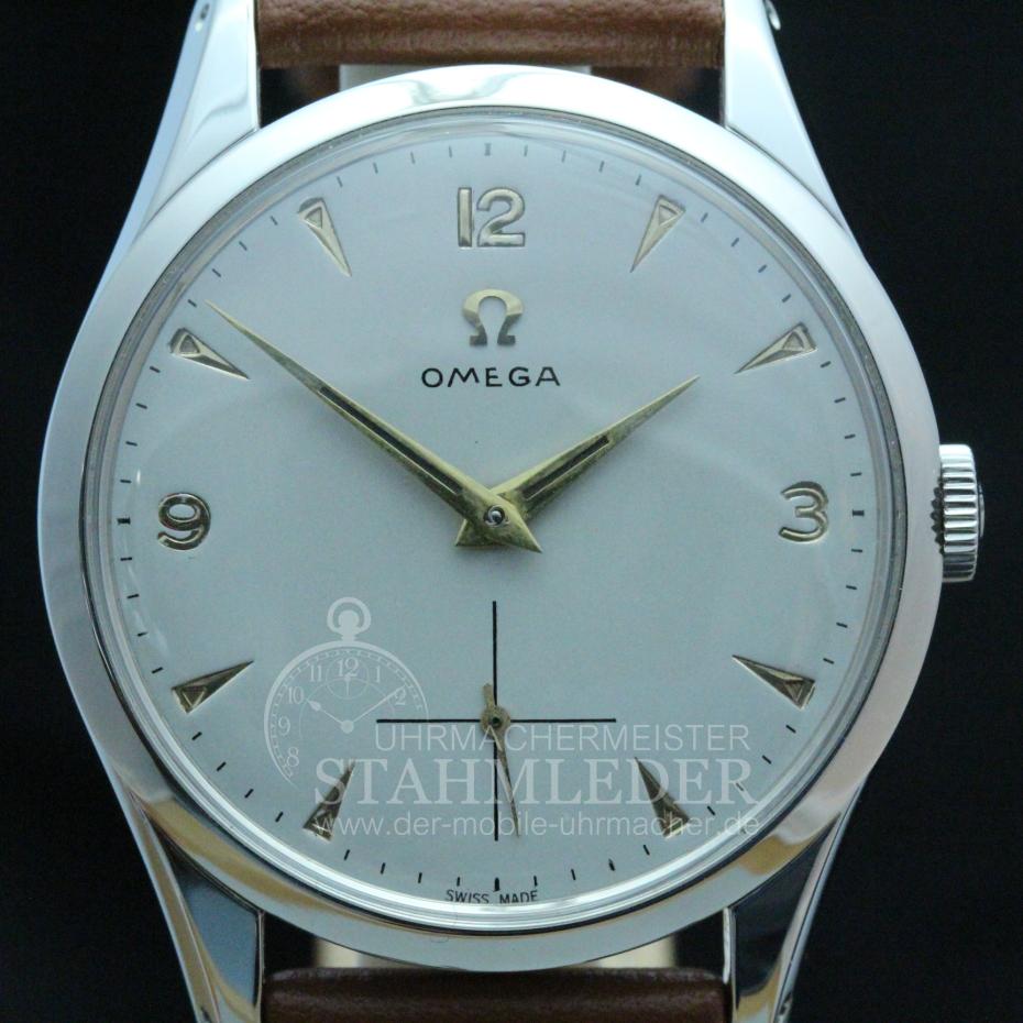 Zum Verkauf steht eine klassische Omega Herrenuhr mit Handaufzug aus dem Jahre 1954 inkl. eines kompletten Wartungsdienstes. Das dreiteilige Stahlgehäuse befindet sich in einem sehr guten Zustand. Im Inneren verrichtet das solide Omega Cal.266 seinen Dienst. Es wurde von 1939 bis 1963 in verschiedenen Varianten gebaut. Die Omega besitzt eine kleine Sekundenanzeige bei "6 Uhr". Der Käufer erhält eine 12-monatige Funktionsgarantie. Die gesetzlichen Gewährleistungsrechte bleiben unberührt. Mit der Garantie wird gewährleistet, dass die Uhr keine Funktionsmängel aufweist. Die Dauer beschränkt sich auf ein Jahr. Der Garantieanspruch ist schriftlich unter Vorlage des Kaufbeleges geltend zu machen. Der Garantieanspruch ist ausgeschlossen, wenn die Uhr durch eigenes Verschulden beschädigt bzw. zerstört wurde. Die Garantie umfasst nicht das Glas, sowie das Armband. Garantiegeber ist der Verkäufer, für die Inanspruchnahme hat sich der Käufer an folgende Adresse zu wenden.