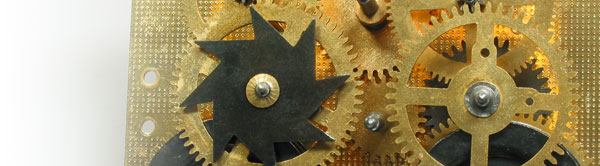 Nach dem Spülen und Trocknen erfolgt eine Sichtkontrolle aller Teile. Nach langer Laufzeit müssen viele Lager ersetzt und die Zapfen poliert werden. Auch der Ersatz von stark eingelaufenen Zapfen und Zähnen an den Laufrädern ist möglich. Nach diesen Reparaturarbeiten geht das Uhrwerk noch einmal durch den Ultraschall. Danach sieht das Uhrwerk aus wie neu. Jetzt wird es zusammengesetzt und das Schlagwerk eingestellt. Zum Abschluß wird an den Lagern, Hebeln & der Hemmung geölt bzw. gefettet.