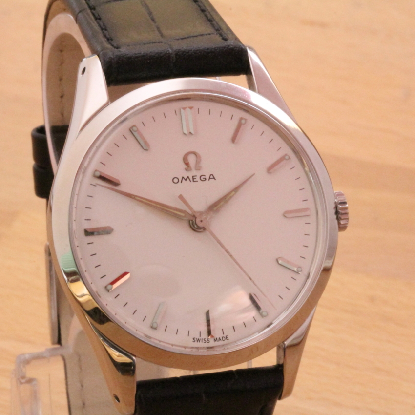 Zum Verkauf steht eine klassische Omega Herrenuhr mit Handaufzug aus dem Jahre 1952. Das Gehäuse besteht aus Edelstahl. Im Inneren verrichtet das solide Omega Cal.283 seinen Dienst. Es wurde von 1940-1963 gebaut. Die Omega hat eine Sekundenanzeige im Zentrum. Sie möchten auch eine Bilderserie von Ihrer Uhr – kein Problem. Bei der nächsten Wartung Ihrer Uhr kann ich das machen. Dazu senden Sie Ihre Uhr an T.Stahmleder, Friedrich-Ebert-Damm 85D, 22047 Hamburg, meine Berufsbezeichnung auf der Sendung bitte weglassen aus Sicherheitsgründen. Dann erstelle ich Ihnen einen Kostenvoranschlag kostenfrei, Portokosten tragen Sie. Die Echtheit der Uhr wird durch die beigefügten Bilder dokumentiert. Alle hier eingestellten Fotos stammen von dieser angebotenen Uhr. Zum Teil sind die Bilder beim Zerlegen der Uhr gemacht worden vor der Reinigung. Oxydationen und Verunreinigungen sind nach dem Reinigen nicht mehr vorhanden. Alle innerhalb des Angebotes genannten und ggf. durch Dritte geschützten Marken-und Warenzeichen unterliegen uneingeschränkten Bestimmungen des jeweils gültigen Kennzeichenrechts und den Besitzrechten der jeweiligen eingetragenen Eigentümer. Allein aufgrund der bloßen Nennung ist nicht der Schluss zu ziehen, dass Markenzeichen nicht durch Rechte Dritter geschützt sind. Das Copyright für veröffentlichte, von UMM T.Stahmleder, selbst erstellte Objekte bleibt allein bei UMM T.Stahmleder. Eine Vervielfältigung oder Verwendung der Bilder und Texte in anderen elektronischen oder gedruckten Publikationen ist nur mit schriftlicher Zustimmung gestattet. Grundsätzliches: Bei der Reparatur von älteren Uhren ist zu beachten !!! Gerade bei älteren Uhren ist besondere Sorgfalt und Aufwand bei der Reparatur nötig, aber trotz dieser Sorgfalt kann man gewisse Eigenschaften der Uhr nicht immer in den Neuzustand zurücksetzen. Dazu gehören z.B. bei verschlissenen Gehäuse/die Wasserdichtigkeit. Daher grundsätzlich kein Duschen + kein Baden !!!